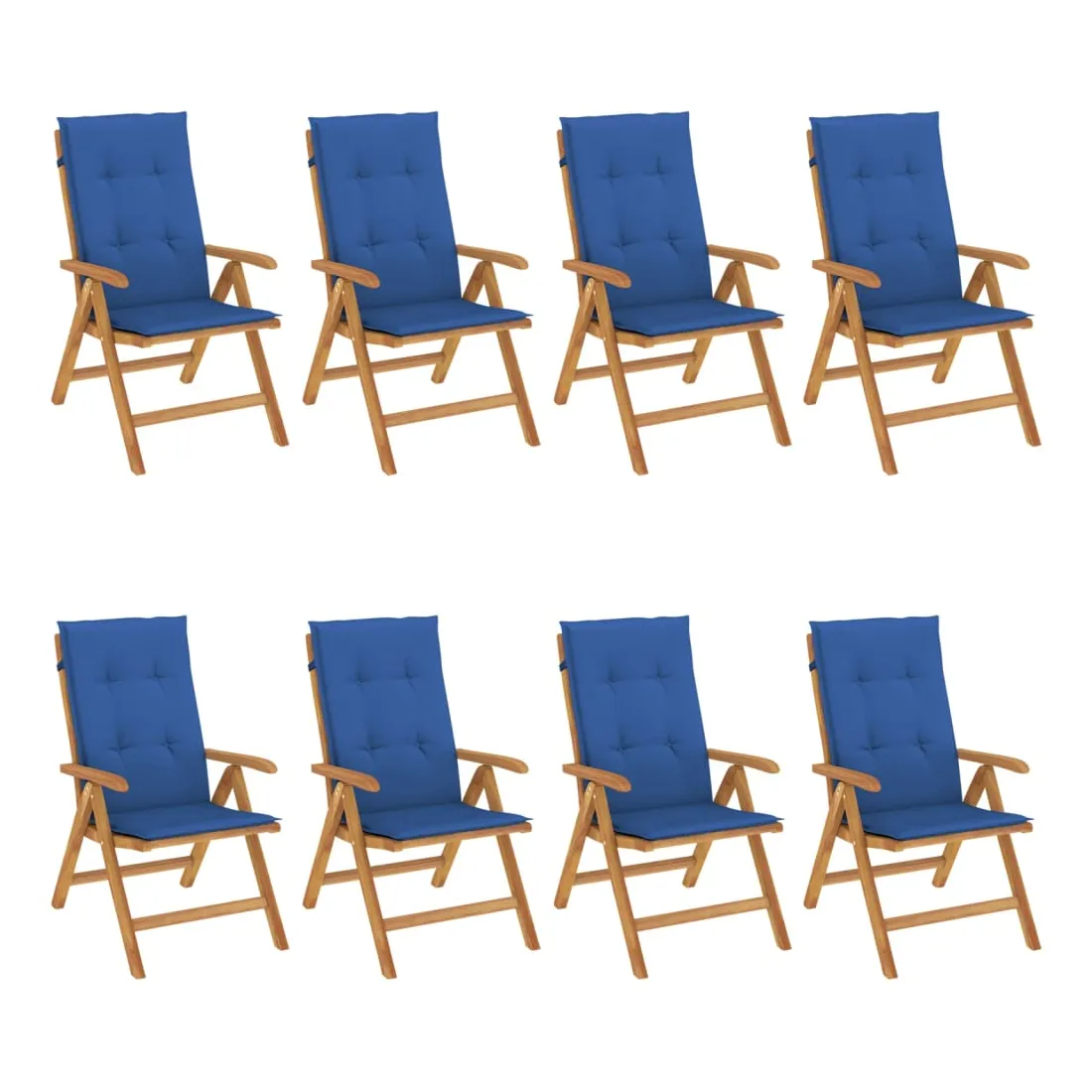 Améliorez le confort de votre espace extérieur avec ces chaises de jardin en bois classiques. Elles sont idéales pour discuter en famille et entre amis ou simplement pour profiter du bain de soleil ! Bois de teck massif : le bois de teck massif est un matériau naturel magnifique. Il a été chevronné, séché au four, puis sablé finement pour lui donner une apparence très lisse. Le bois de teck est connu pour sa résistance exceptionnelle et sa résistance aux intempéries.Dossier réglable : les dossiers des chaises de jardin sont réglables en 6 positions afin que vous puissiez toujours trouver la position la plus confortable.Fonction pliable : la chaise de jardin est pliable, ce qui vous permet de la replier pour gagner de la place lorsque vous ne l'utilisez pas.Assise confortable : la chaise d'extérieur, avec son assise à lattes, ses accoudoirs et son dossier incurvés, s'adapte à votre corps et vous offre un confort optimal. De plus, le coussin moelleux offre un confort d'assise optimal.Coussin antidérapant : des cordes bien conçues et une sangle arrière élastique permettent de fixer facilement le coussin à la chaise et de le maintenir proprement et en toute sécurité. Bon à savoir :Pour que vos meubles d'extérieur restent beaux, nous vous recommandons de les protéger avec une housse imperméable.
