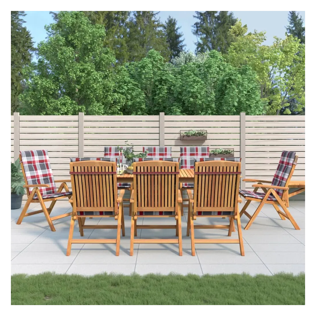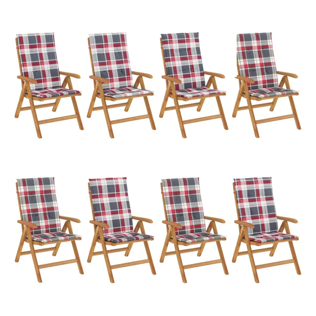 Améliorez le confort de votre espace extérieur avec ces chaises de jardin en bois classiques. Elles sont idéales pour discuter en famille et entre amis ou simplement pour profiter du bain de soleil ! Bois de teck massif : le bois de teck massif est un matériau naturel magnifique. Il a été chevronné, séché au four, puis sablé finement pour lui donner une apparence très lisse. Le bois de teck est connu pour sa résistance exceptionnelle et sa résistance aux intempéries.Dossier réglable : les dossiers des chaises de jardin sont réglables en 6 positions afin que vous puissiez toujours trouver la position la plus confortable.Fonction pliable : la chaise de jardin est pliable, ce qui vous permet de la replier pour gagner de la place lorsque vous ne l'utilisez pas.Assise confortable : la chaise d'extérieur, avec son assise à lattes, ses accoudoirs et son dossier incurvés, s'adapte à votre corps et vous offre un confort optimal. De plus, le coussin moelleux offre un confort d'assise optimal.Coussin antidérapant : des cordes bien conçues et une sangle arrière élastique permettent de fixer facilement le coussin à la chaise et de le maintenir proprement et en toute sécurité. Bon à savoir :Pour que vos meubles d'extérieur restent beaux, nous vous recommandons de les protéger avec une housse imperméable.