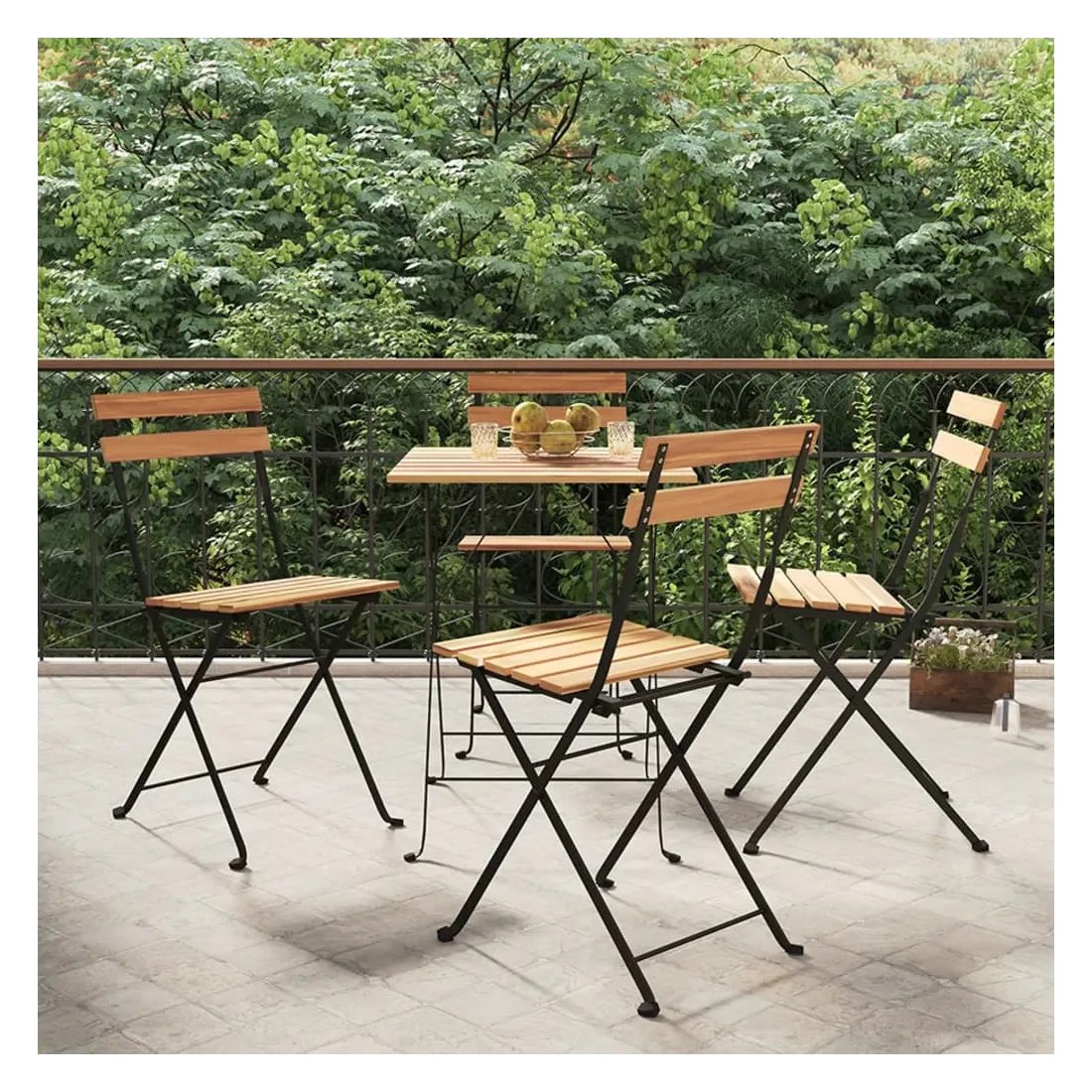 Ces chaises de bistrot pliantes sont un complément parfait à votre jardin et à votre terrasse, créant une impression durable ! Matériau durable : le bois de teck massif est un beau matériau naturel. Il a été chevronné, séché au four, puis sablé finement pour lui donner une apparence très lisse. Le bois de teck est connu pour sa résistance exceptionnelle et sa résistance aux intempéries.Cadre stable : le cadre en acier enduit de poudre assure la robustesse et la stabilité.Design pliable : les chaises peuvent être facilement repliées lorsqu'elles ne sont pas utilisées pour faciliter le rangement et le transport. Remarque :Afin de prolonger la durée de vie de votre mobilier d'extérieur, nous vous recommandons de le protéger avec une housse imperméable.Chaque produit est livré avec un manuel de montage dans la boîte pour un montage facile.