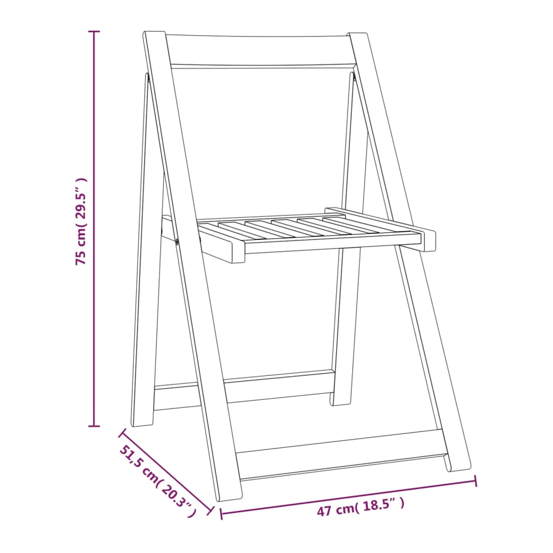 vidaXLCes chaises de jardin en bois seront un excellent supplément à votre jardin, terrasse ou patio. Bois d'acacia massif : le bois d'acacia massif est un matériau naturel magnifique. Le bois d'acacia un bois dur tropical, qui est dense, robuste et durable.Cadre en bois : les cadres en bois de ces chaises d'extérieur assurent leur robustesse et leur stabilité.Design pliable : lorsqu'elles ne sont pas utilisées, ces chaises de patio peuvent être facilement pliées et ne prennent pas beaucoup de place. Remarque :Afin de prolonger la durée de vie de votre mobilier d'extérieur, nous vous recommandons de le protéger avec une housse imperméable.Chaque produit est livré avec un manuel de montage dans la boîte pour un montage facile.