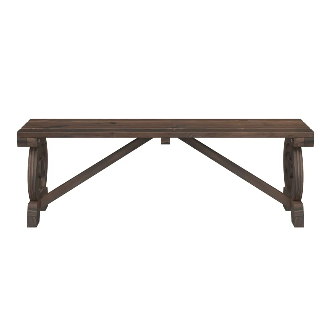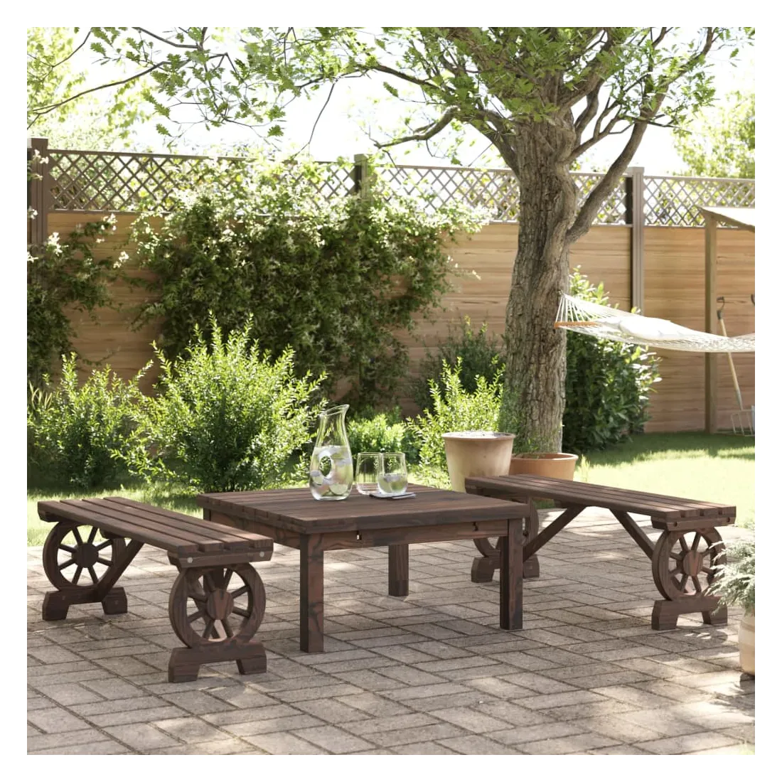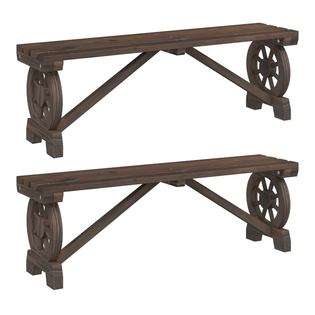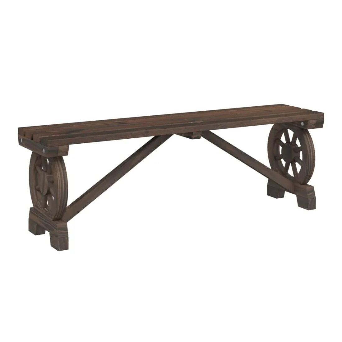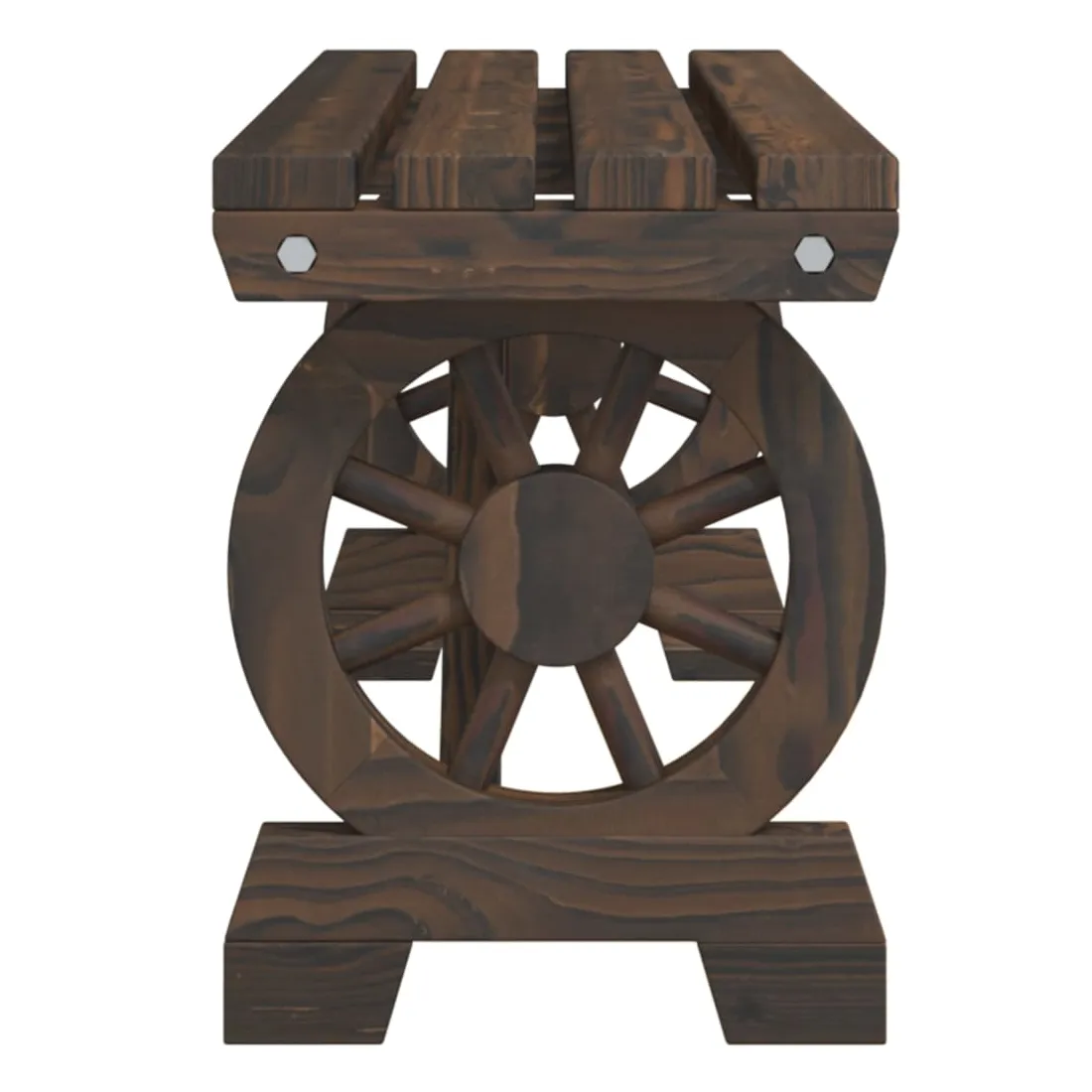 Ces bancs de jardin en bois seront un excellent ajout à votre jardin, patio ou terrasse, vous permettant de passer des moments agréables avec votre famille ou vos amis. Bois de sapin massif : le bois de sapin massif est un matériau beau et durable qui conserve son intégrité même lorsqu'il est exposé à l'humidité. Il ne sèche pas et ne se déforme pas, ce qui en fait un choix fiable.Cadre robuste : le cadre en bois assure robustesse et stabilité.Design attrayant : le banc d’extérieur présent un design en forme de roue de chariot qui offre un affichage accrocheur sous tous les angles. Bon à savoir :Pour que vos meubles d'extérieur restent beaux, nous vous recommandons de les protéger avec une housse imperméable.