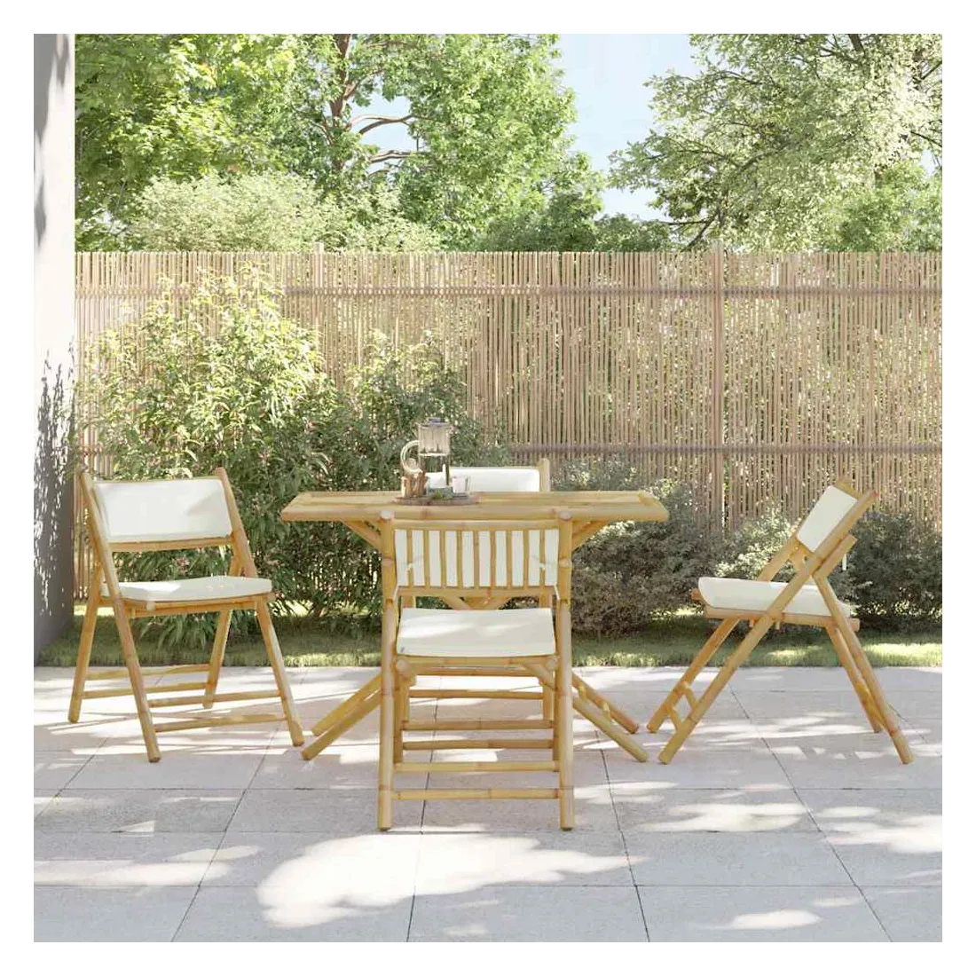 Ces chaises de bistro, fabriquées en bambou massif, seront un excellent choix pour votre famille pour dîner ou lire et se détendre. Matériau durable : le bambou est connu pour sa flexibilité et sa dureté. Les meubles en bambou sont une bonne option lorsque vous voulez des meubles solides fabriqués à partir de matériaux naturels.Doux et durable : le tissu présente un aspect simple et épuré tout en restant respirant et durable.Conception pliable : ces chaises peuvent être facilement repliées lorsqu’elles ne sont pas utilisées, pour un rangement et un transport faciles.Expérience d'assise confortable : ces chaises, dotées de coussins épais, offrent une expérience d'assise confortable.Housse amovible et lavable : ces coussins de siège sont dotés de housses amovibles pour un lavage et un entretien faciles. Les housses de coussin ont un rabat à l'arrière pour une fixation facile aux dossiers. Bon à savoir :Pour que vos meubles d'extérieur restent beaux, nous vous recommandons de les protéger avec une housse imperméable.