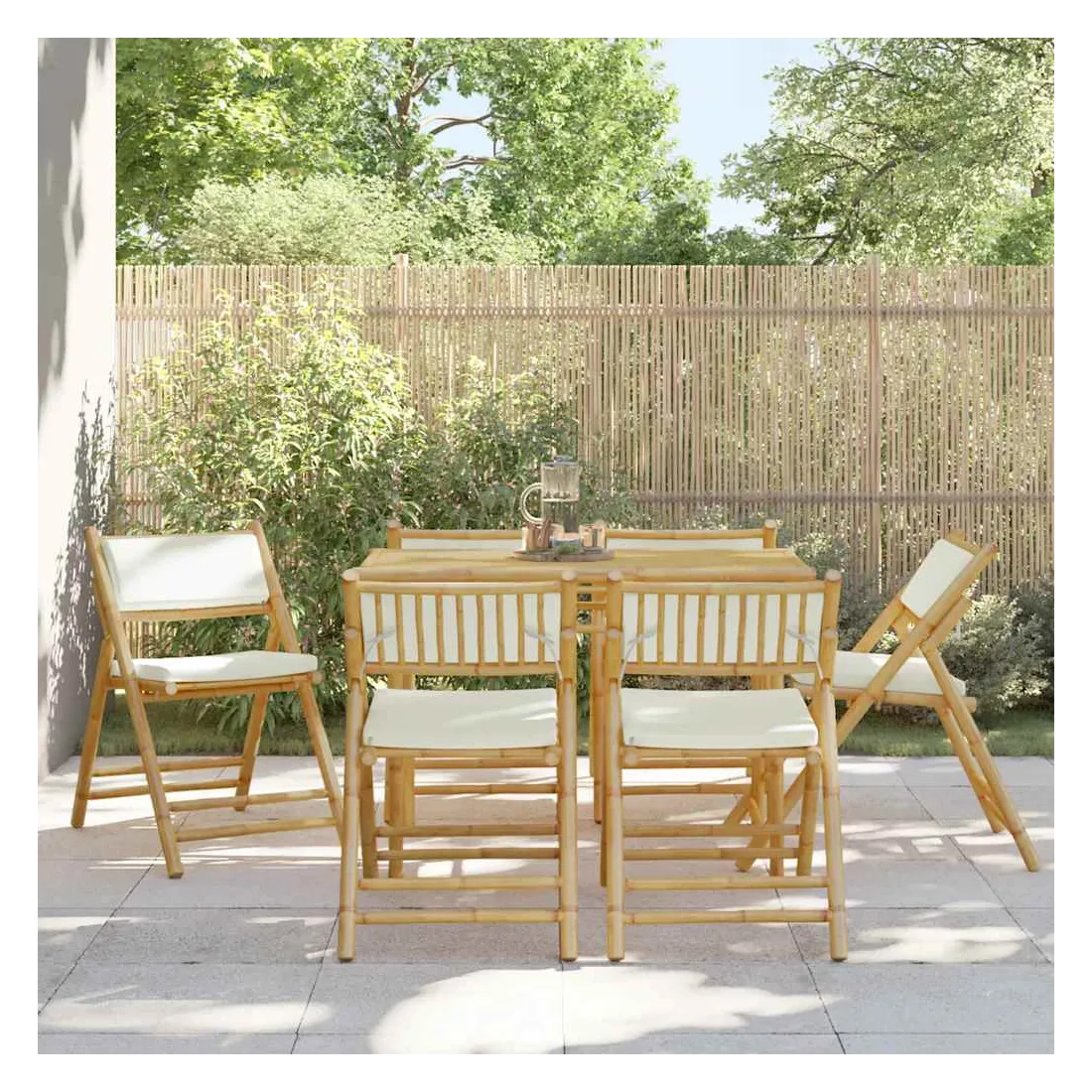 Ces chaises de bistro, fabriquées en bambou massif, seront un excellent choix pour votre famille pour dîner ou lire et se détendre. Matériau durable : le bambou est connu pour sa flexibilité et sa dureté. Les meubles en bambou sont une bonne option lorsque vous voulez des meubles solides fabriqués à partir de matériaux naturels.Doux et durable : le tissu présente un aspect simple et épuré tout en restant respirant et durable.Conception pliable : ces chaises peuvent être facilement repliées lorsqu’elles ne sont pas utilisées, pour un rangement et un transport faciles.Expérience d'assise confortable : ces chaises, dotées de coussins épais, offrent une expérience d'assise confortable.Housse amovible et lavable : ces coussins de siège sont dotés de housses amovibles pour un lavage et un entretien faciles. Les housses de coussin ont un rabat à l'arrière pour une fixation facile aux dossiers. Bon à savoir :Pour que vos meubles d'extérieur restent beaux, nous vous recommandons de les protéger avec une housse imperméable.
