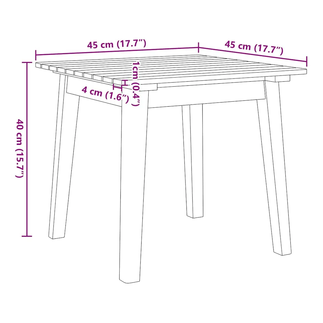 - 1 x Table de jardin : 90 x 45 x 40 cm (LxWxH)