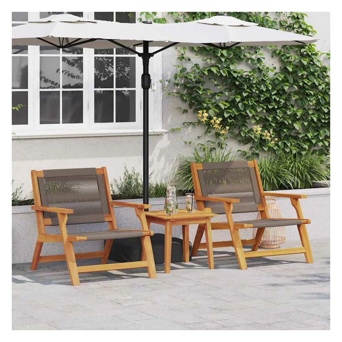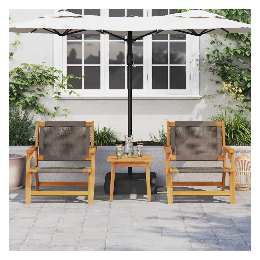 Cet ensemble de mobilier de jardin inclut des chaises stylées et une table, toutes en bois d'acacia massif. Avec son style moderne, il rend votre espace extérieur encore plus beau et fonctionnel. Les lignes nettes de cet ensemble ajoutent une touche chic, ce qui le rend parfait pour votre jardin ou terrasse. Léger mais solide, il permet de passer des moments agréables en mangeant ou en se relaxant sous le ciel. Matériaux : Entièrement en bois d'acacia massif, connu pour sa durabilité et son côté naturel. Ce choix enrichit le charme visuel des meubles et leur permet de résister aux conditions extérieures, parfaits pour un usage prolongé. Composants : Chaque chaise a un joli dossier, des accoudoirs solides, et des pieds robustes, tous en bois de qualité pour garder une belle harmonie. Les matériaux assurent un bon soutien et une expérience d'assise agréable, s'accordant avec le design épuré. Fonction : La finition à l'huile souligne la couleur naturelle du bois tout en le protégeant de l'humidité, ce qui est essentiel à l'extérieur. Cette finition garde l'aspect des meubles même lorsqu'ils sont exposés aux éléments, assurant qu'ils restent jolis dans le temps. Utilisations recommandées : Idéal pour les jardins, terrasses et autres espaces extérieurs, cet ensemble est parfait pour les repas et les rassemblements en extérieur, favorisant la détente au soleil. Entretien & Maintenance : Un entretien facile nécessite juste un coup de chiffon sec pour garder son aspect pendant des années. Un traitement à l'huile de temps en temps est conseillé pour garder la couche de protection et l'apparence au top.