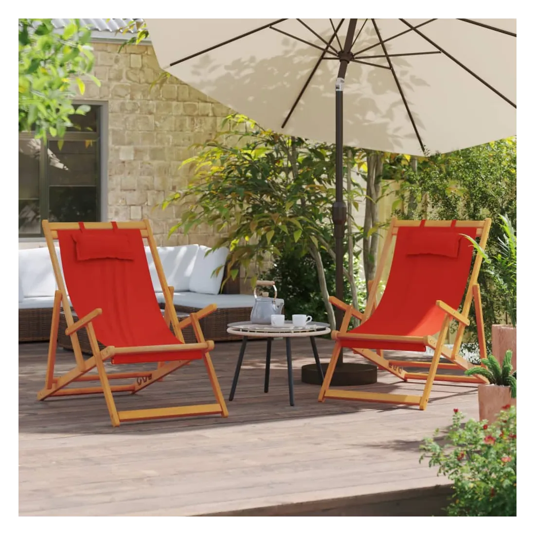 Détendez-vous dans ces chaises inclinables sur la plage, le camping ou dans votre jardin ! Fabriquées en bois d’eucalyptus massif et en tissu polyester, les chaises de plage pliables sont résistantes aux intempéries et très durables. Tissu durable : le tissu présente un aspect simple et épuré tout en restant respirant et durable.Cadre robuste : ces table longues sont construites avec un cadre en bois, ce qui leur confère robustesse et stabilité.Design réglable et pliable : les chaises de camping peuvent être ajustées en 3 positions d'inclinaison pour un confort optimal. En outre, les chaises de plage peuvent être pliées pour faciliter le transport et le stockage lorsqu’elles ne sont pas utilisées.