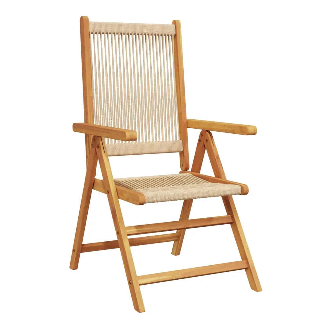 vidaXLDétendez-vous et profitez de l'extérieur dans ces confortables chaises de jardin inclinables ! Robuste et stable : le bois d'acacia massif est connu pour sa solidité et sa durabilité. Ses couleurs variées et ses grains uniques lui confèrent un aspect attrayant. Sa stabilité et sa résistance aux intempéries en font un matériau idéal pour la fabrication de meubles d'intérieur et d'extérieur.Fonction d'inclinaison : le siège de jardin est spécialement conçu avec une fonction d'inclinaison afin que vous puissiez régler le dossier selon votre confort.Facile à transporter et à ranger : la chaise peut être facilement pliée lorsqu'elle n'est pas utilisée, pour un rangement et un transport faciles.Conception pratique : la main courante en bois, pratique et plate, vous permet de poser vos mains dessus tout en profitant d'un moment en plein air.Diverses utilisations : la chaise pliable a un large éventail d'utilisations et peut facilement répondre à vos besoins dans n'importe quel environnement extérieur, comme les jardins, les patios, les balcons, etc. Bon à savoir :Pour que vos meubles d'extérieur restent beaux, nous vous recommandons de les protéger avec une housse imperméable.
