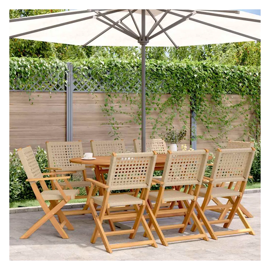 Détendez-vous et profitez de l'extérieur dans ces confortables chaises de jardin pliantes ! Robuste et stable : le bois d'acacia massif est connu pour sa solidité et sa durabilité. Ses couleurs variées et ses grains uniques lui confèrent un aspect attrayant. Sa stabilité et sa résistance aux intempéries en font un matériau idéal pour la fabrication de meubles d'intérieur et d'extérieur.Matériau durable : la résine tressée, également connue sous le nom de poly rotin, est un matériau synthétique solide et nécessitant peu d'entretien qui ressemble au rotin naturel. Il est léger, facile à nettoyer et couramment utilisé pour les meubles d'extérieur en raison de sa durabilité et de ses propriétés de résistance aux intempéries.Facile à transporter et à ranger : la chaise peut être facilement pliée lorsqu'elle n'est pas utilisée, pour un rangement et un transport faciles.Conception pratique : la main courante en bois, pratique et plate, vous permet de poser vos mains dessus tout en profitant d'un moment en plein air.Diverses utilisations : la chaise pliable a un large éventail d'utilisations et peut facilement répondre à vos besoins dans n'importe quel environnement extérieur, comme les jardins, les patios, les balcons, etc. Bon à savoir :Pour que vos meubles d'extérieur restent beaux, nous vous recommandons de les protéger avec une housse imperméable.