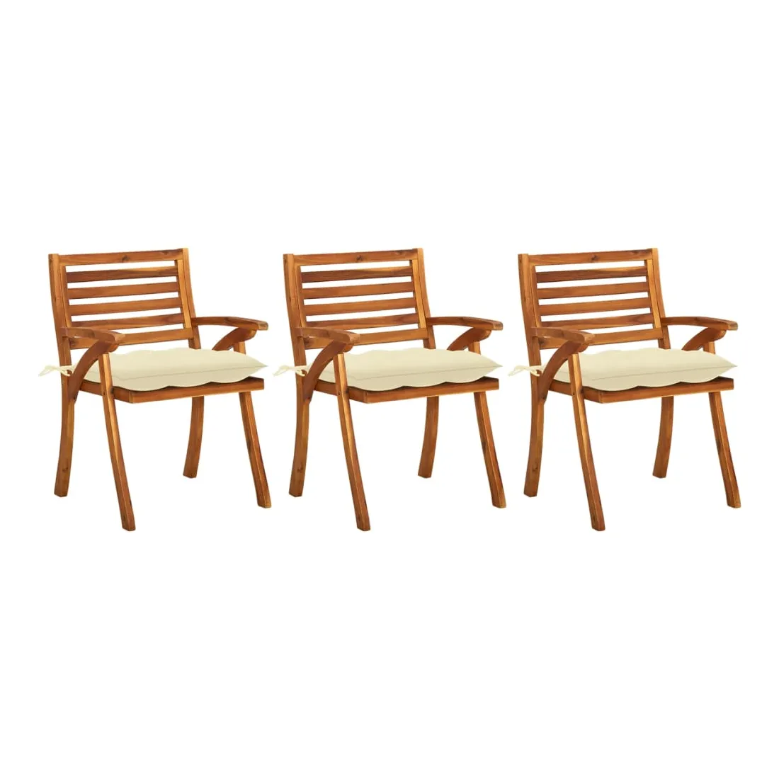 Chaises à manger de jardin avec coussins lot de 3 Acacia massif