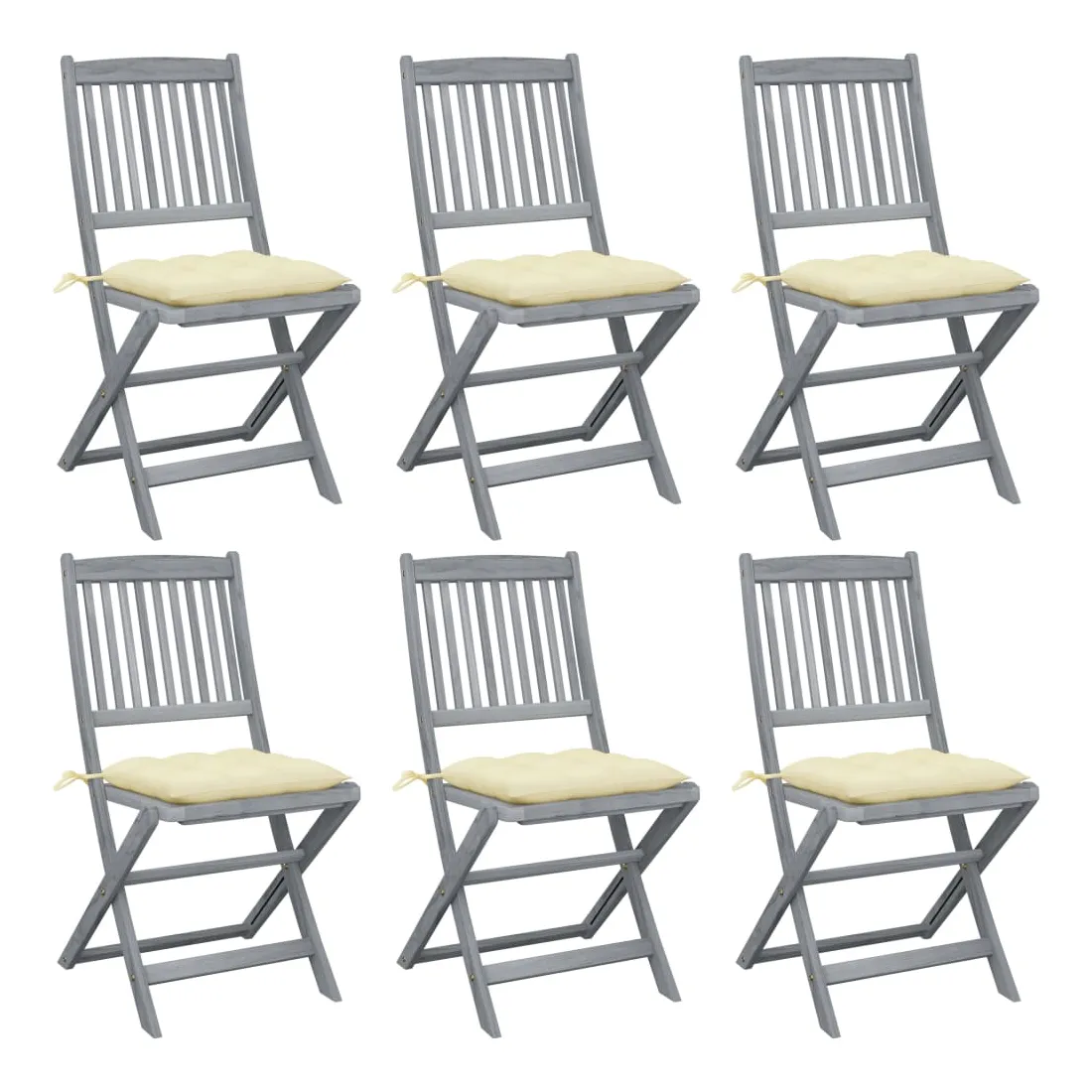Chaises pliables d'extérieur lot de 6 et coussins Bois d'acacia