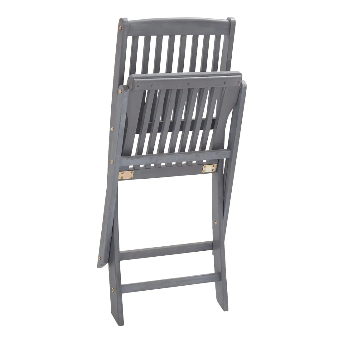 vidaXLCet ensemble de chaises de salle à manger en bois contemporain avec coussins ajoute une touche de style naturel à votre jardin, terrasse ou patio. Cet ensemble de chaises pliables est un excellent choix pour les repas. Ces chaises de salle à manger sont faites de bois d’acacia massif, un bois dur tropical, les rendant résistantes aux intempéries et durables pour des années d’utilisation. Le bois d’acacia massif a la force de soutenir le poids et de résister à l’usure du temps. La surface grise délavée est facile à nettoyer avec un chiffon humide. Les chaises peuvent être repliées pour économiser de l’espace lorsqu'elles ne sont pas utilisées. De plus, les coussins inclus offrent un confort supplémentaire lors des moments de détente ou des repas. Chaque coussin comporte deux ensembles de cordes pour le fixer fermement à la chaise.
