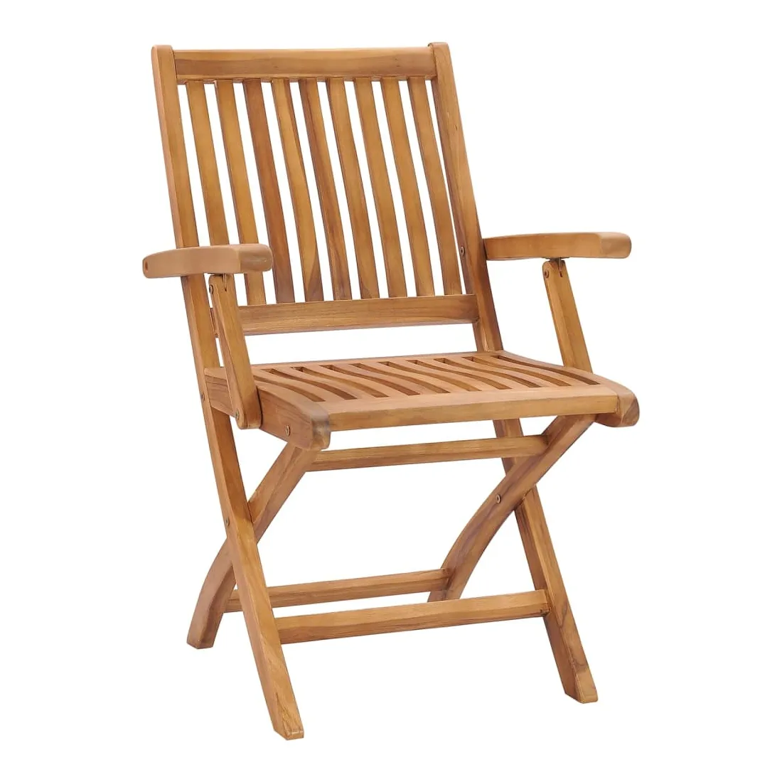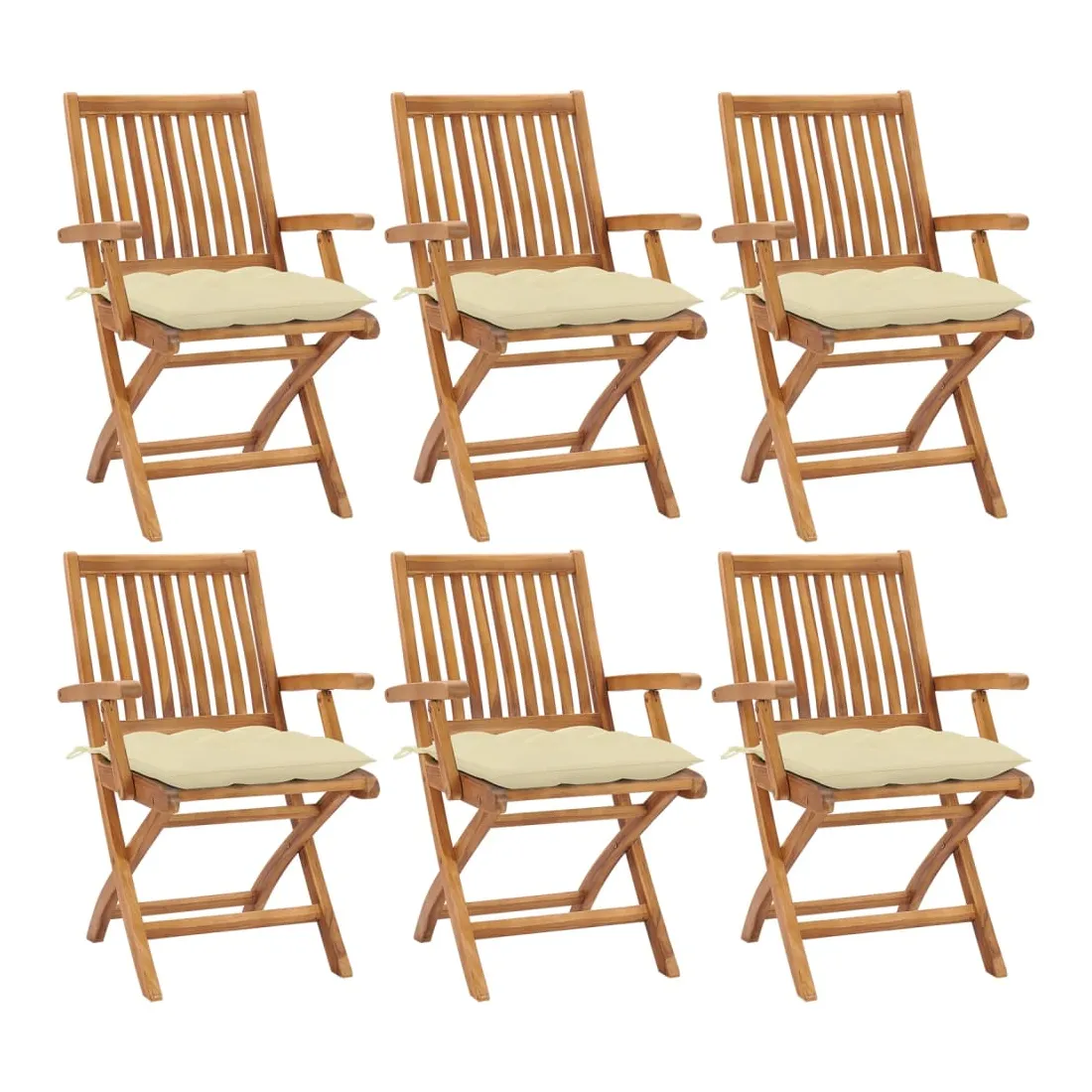 Cet ensemble de chaises de jardin en bois présente un design intemporel. Les chaises d’extérieur conviennent à tous les environnements, tels que les maisons, les bureaux, les bars et les cafés, grâce à leur design simple mais élégant. Fabriqué en bois dur de teck extrêmement durable, cet ensemble de meubles en teck a été chevronné, séché au four puis finement poncé pour lui donner un aspect très lisse. Le bois de teck est connu pour sa résistance exceptionnelle aux intempéries, ce qui le rend bien plus adapté aux meubles de jardin que tout autre type de bois. Le bois de teck est le choix idéal si vous souhaitez acheter un meuble de jardin durable. Grâce à la surface sablée, les chaises de salle à manger sont résistantes aux intempéries et faciles à nettoyer. Elles peuvent également être pliées pour économiser de l’espace de stockage lorsqu'elles ne sont pas utilisées. De plus, les coussins fournis offrent un confort supplémentaire. Chaque coussin dispose de 2 ensembles de cordes pour le fixer solidement sur la chaise. Remarque : afin de prolonger la durée de vie de vos meubles d'extérieur, nous vous recommandons de les nettoyer régulièrement et de ne pas les laisser à l'extérieur sans protection inutilement.Nettoyage : utiliser une solution savonneuse douceStockage : si possible, stockez dans un endroit frais et sec à l'intérieur. Si le produit est stocké à l'extérieur, protégez-le avec une housse imperméable. Essuyez et séchez l'excès d'eau ou de neige des surfaces planes après la pluie ou une chute de neige. Permettez une circulation d'air suffisante afin d'éviter les dommages liés à l'humidité.