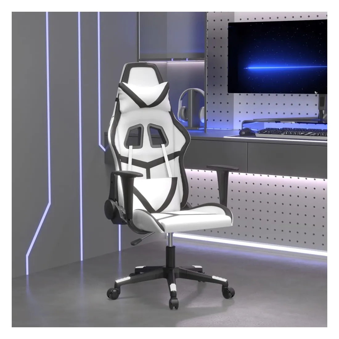 Profitez de cette chaise de jeu unique et améliorez votre expérience de jeu avec confort ! Similicuir durable : le similicuir de qualité supérieure est un matériau très durable. Il est résistant aux taches, ce qui le rend facile à nettoyer avec un chiffon humide. La surface lisse donne également un aspect luxueux et la beauté du cuir véritable.Dossier et hauteur réglables : il est spécialement conçu avec une fonction d'inclinaison afin que vous puissiez régler le dossier selon votre confort. Utilisez le levier pour régler la hauteur de votre siège à votre convenance.Design pratique : le design pivotant à 360 degrés permet une plus grande amplitude de mouvement. De plus, il est pratique de le déplacer avec des roulettes.Cadre robuste et stable : les cadres en métal et en contreplaqué assurent robustesse et stabilité. Remarque :Chaque produit est livré avec un manuel de montage dans la boîte pour un montage facile.