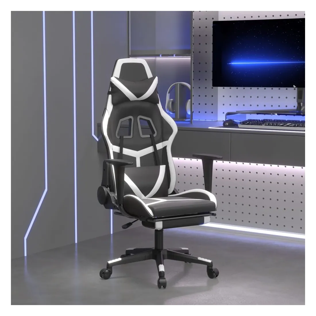 Profitez de cette chaise de jeu unique et améliorez votre expérience de jeu avec confort ! Similicuir durable : le similicuir de qualité supérieure est un matériau très durable. Il est résistant aux taches, ce qui le rend facile à nettoyer avec un chiffon humide. La surface lisse donne également un aspect luxueux et la beauté du cuir véritable.Dossier et hauteur réglables : il est spécialement conçu avec une fonction d'inclinaison afin que vous puissiez régler le dossier et le repose-pied selon votre confort. Utilisez le levier pour régler la hauteur de votre siège à votre convenance.Design pratique : le design pivotant à 360 degrés permet une plus grande amplitude de mouvement. De plus, il est pratique de le déplacer avec des roulettes.Cadre robuste et stable : les cadres en métal et en contreplaqué assurent robustesse et stabilité. Remarque :Chaque produit est livré avec un manuel de montage dans la boîte pour un montage facile.
