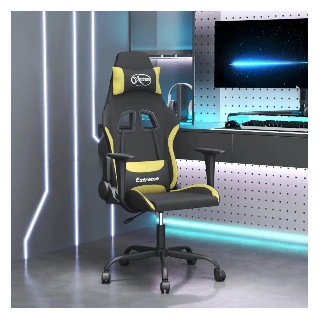 Chaise de jeu Noir et vert clair Tissu