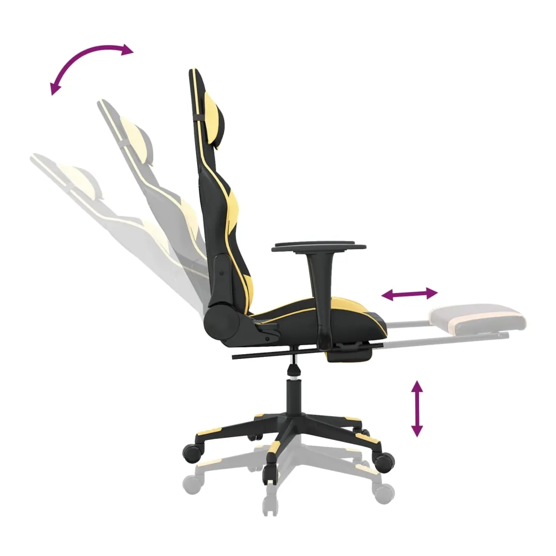 Chaise de jeu avec repose-pied Noir et doré Similicuir
