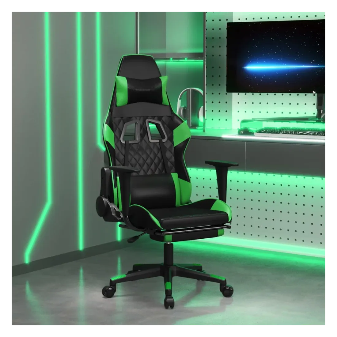 Profitez de cette chaise de jeu unique et améliorez votre expérience de jeu avec confort ! Similicuir durable : le similicuir de qualité supérieure est un matériau très durable. Il est résistant aux taches, ce qui le rend facile à nettoyer avec un chiffon humide. La surface lisse donne également un aspect luxueux et la beauté du cuir véritable.Dossier et hauteur réglables : il est spécialement conçu avec une fonction d'inclinaison afin que vous puissiez régler le dossier et le repose-pied selon votre confort. Utilisez le levier pour régler la hauteur de votre siège à votre convenance.Design pratique : le design pivotant à 360 degrés permet une plus grande amplitude de mouvement. De plus, il est pratique de le déplacer avec des roulettes.Cadre robuste et stable : les cadres en métal et en contreplaqué assurent robustesse et stabilité. Remarque :Chaque produit est livré avec un manuel de montage dans la boîte pour un montage facile.