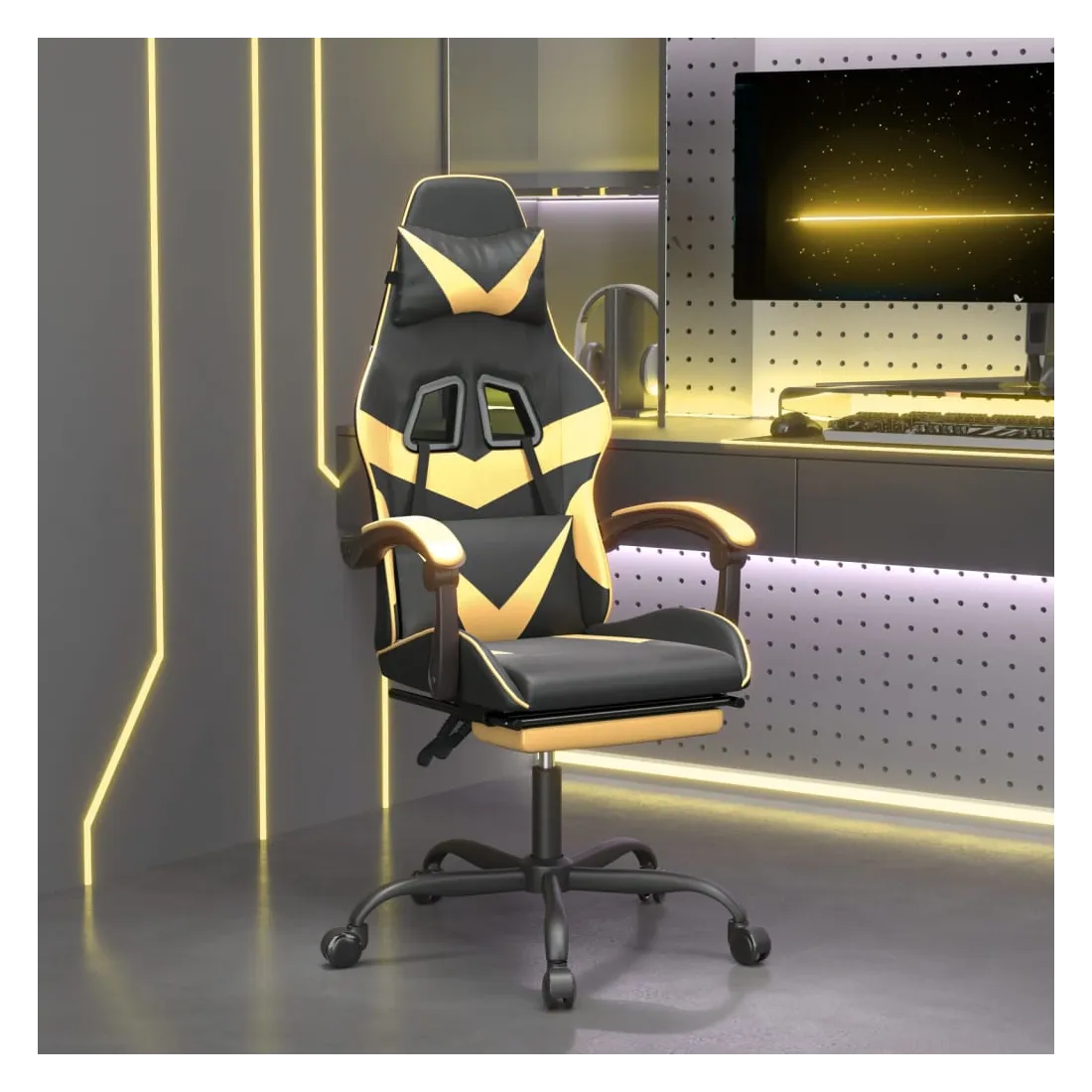 Profitez de cette chaise de jeu unique et améliorez votre expérience de jeu avec confort ! Similicuir durable : le similicuir de qualité supérieure est un matériau très durable. Il est résistant aux taches, ce qui le rend facile à nettoyer avec un chiffon humide. La surface lisse donne également un aspect luxueux et la beauté du cuir véritable.Dossier et hauteur réglables : il est spécialement conçu avec une fonction d'inclinaison afin que vous puissiez régler le dossier et le repose-pied selon votre confort. Utilisez le levier pour régler la hauteur de votre siège à votre convenance.Design pratique : le design pivotant à 360 degrés permet une plus grande amplitude de mouvement. De plus, il est pratique de le déplacer avec des roulettes.Cadre robuste et stable : les cadres en métal et en contreplaqué assurent robustesse et stabilité. Remarque :Chaque produit est livré avec un manuel de montage dans la boîte pour un montage facile.