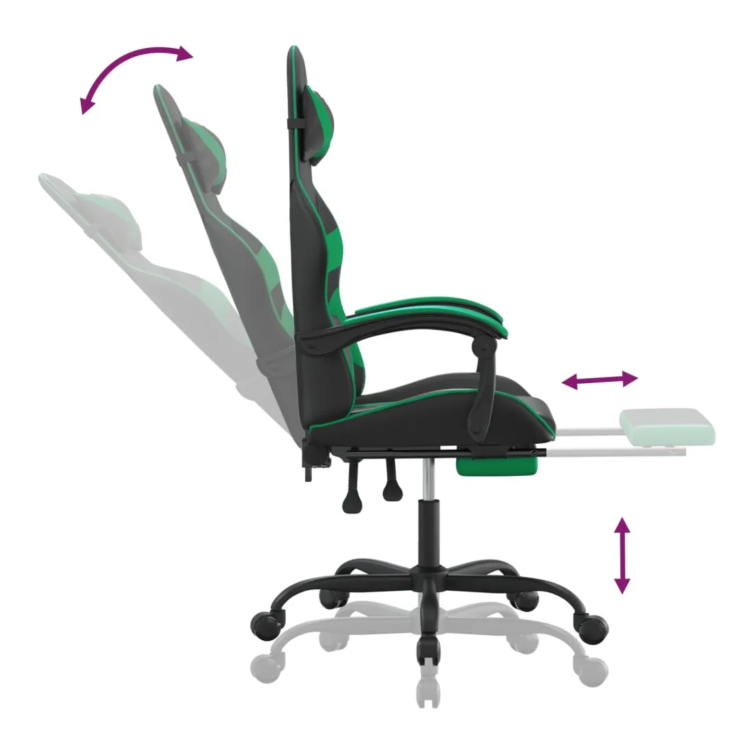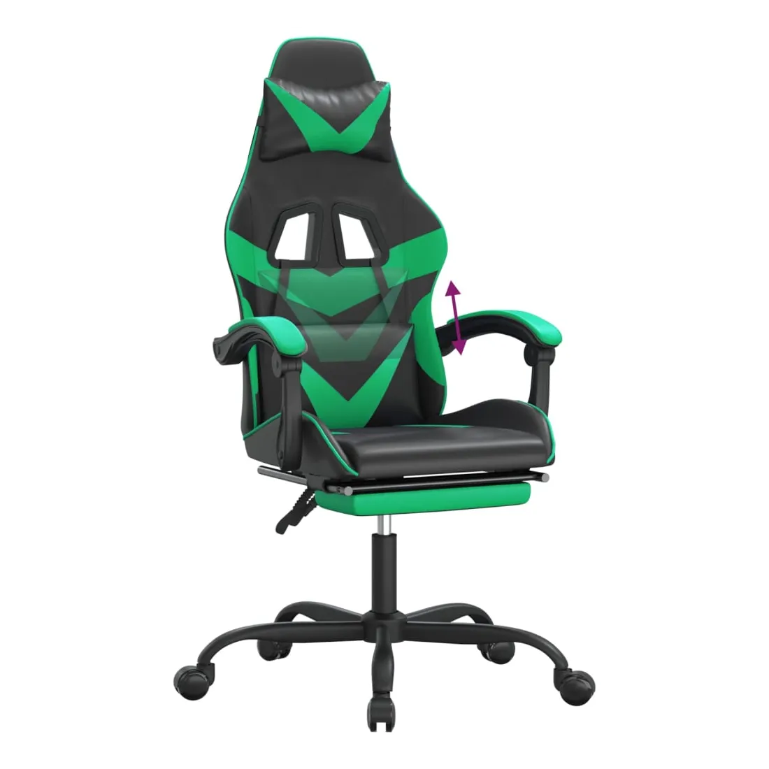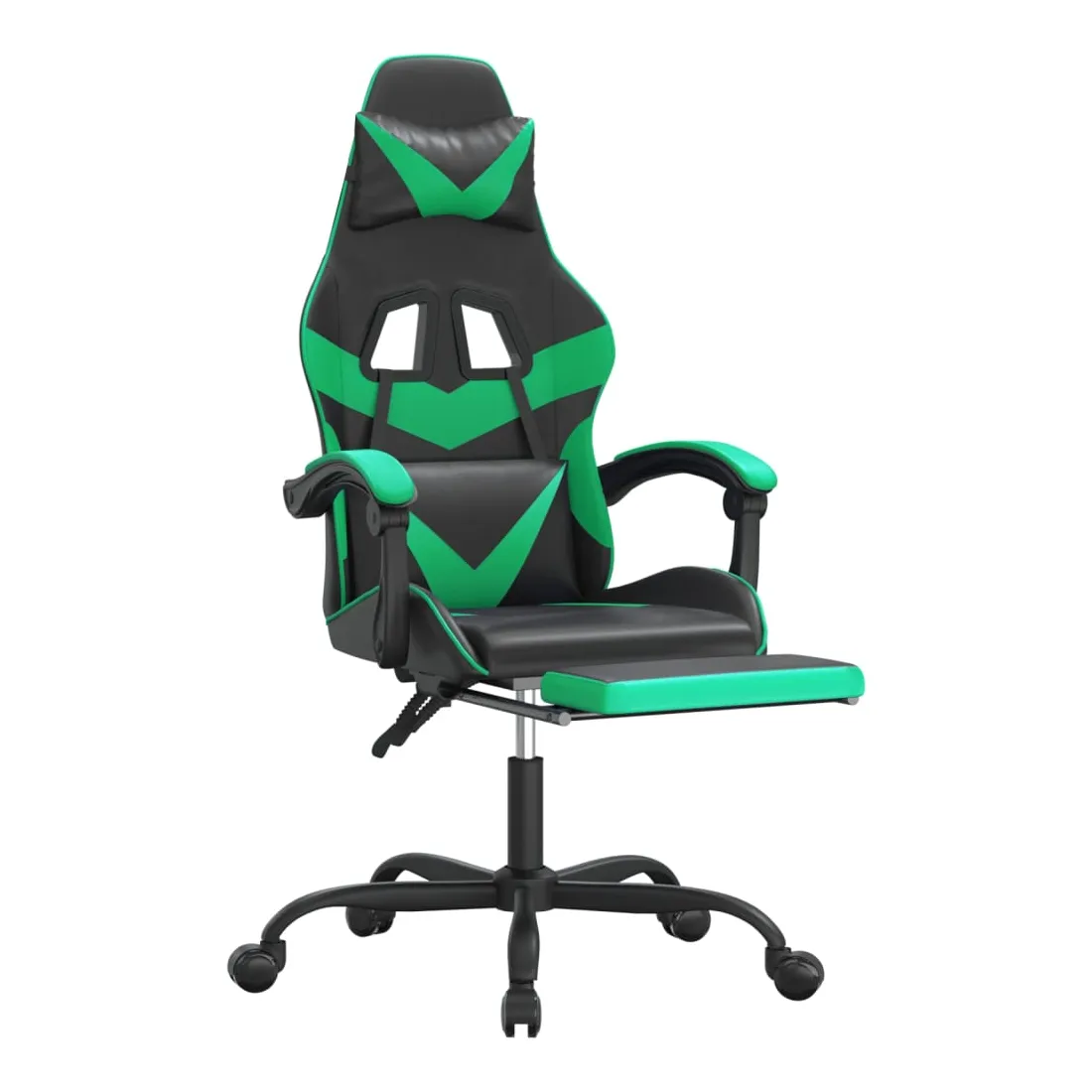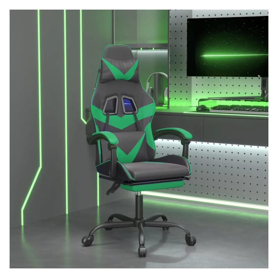Chaise de jeu avec repose-pied Noir et vert Similicuir