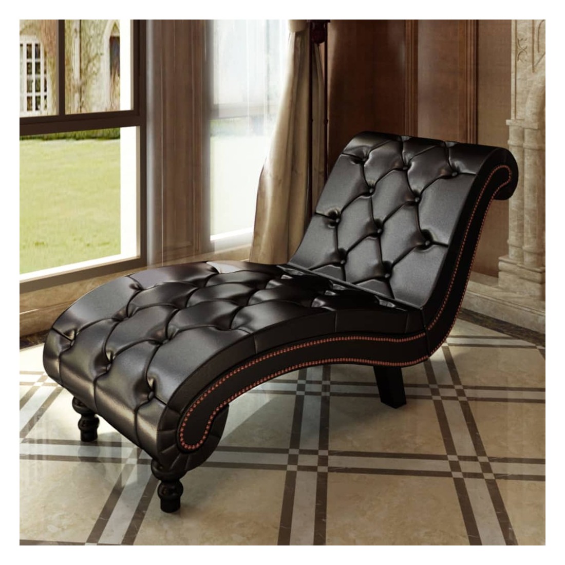 Les pieds sont en bois, matériaux de rembourrage durables vous assurant ainsi un bon sommeil tout en apportant une touche d'élégance. Notre méridienne est bien rembourrée pour plus de confort, avec motif losange sur le dossier. Le style capitonné et la couleur marron foncé s'intègre parfaitement à tous les intérieurs. Avec cette méridienne, vous aurez le plaisir de profiter d'un instant de détente agréable à tout moment de la journée.