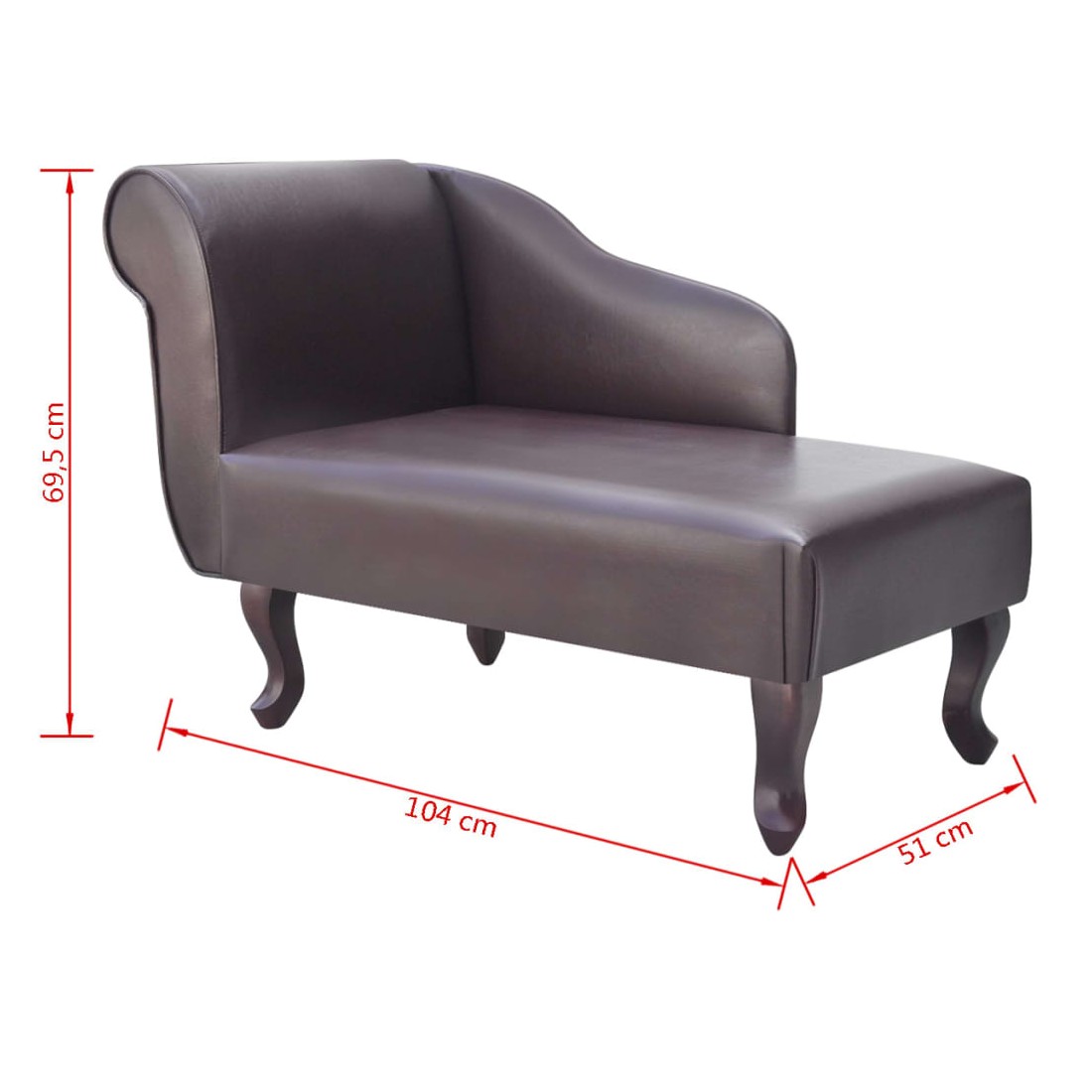Cette chaise longue en cuir synthétique est un meuble très élégant. Avec son design majestueux, la chaise longue de haute qualité deviendra le point central de votre salon ou chambre à coucher. L'assise, le dossier et l'accoudoir, épaississement rembourrés, le rendent très confortable et ses solides pieds en bois contribuent à sa construction robuste. Notre chaise longue entièrement rembourrée sera un supplément luxueux à votre décor de salon !