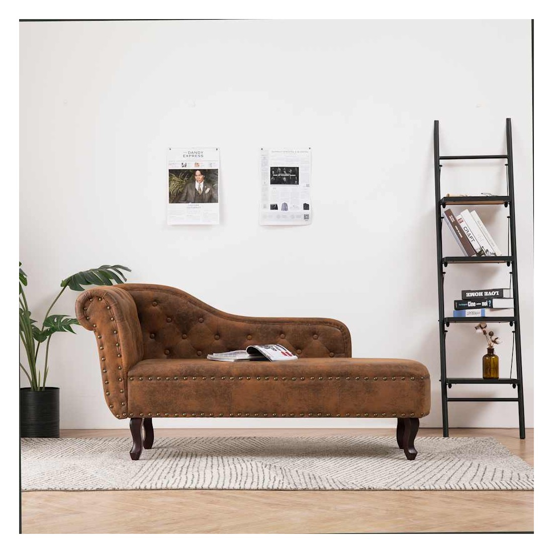 Cette chaise longue est un meuble très élégant, qui deviendra le point central de votre intérieur. Le canapé en similicuir daim, au design majestueux, s'intégrera parfaitement au style de votre maison. Le siège, le dossier et les accoudoirs épaississement rembourrés le rendent très confortable, et ses pieds solides en bois contribuent à la construction robuste. Notre chaise longue entièrement rembourrée sera un supplément à la décoration de votre salon !