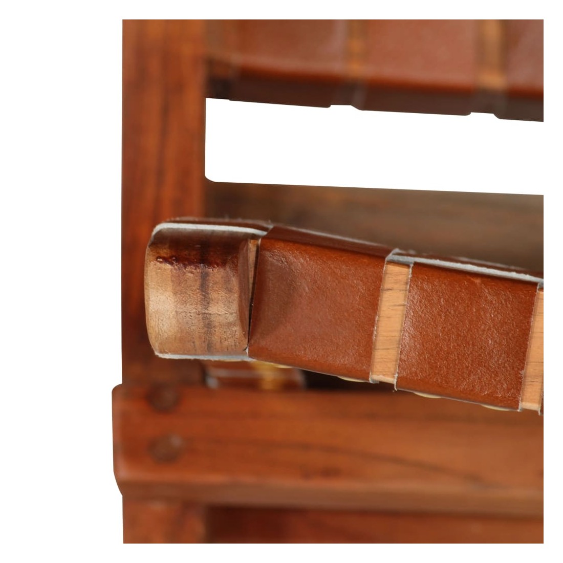 Cette chaise en cuir véritable, douce et confortable, présente un design rustique qui fait fureur à l'heure actuelle. Elle resplendira non seulement dans votre salon à la maison, mais également dans votre espace de vie extérieur. Le siège et le dossier en cuir véritable sont doux au toucher et très confortables, tandis que le cadre en bois d'acacia massif rend la chaise durable. Grâce à la conception pliante, cette chaise de relaxation peut être facilement rangée lorsqu'elle n'est pas utilisée. L'article est déjà assemblé. Aucun assemblage n'est requis. Remarque importante : les motifs en cuir peuvent varier d’une pièce à l’autre, ce qui rend chacune de nos chaises unique. La livraison est aléatoire, ce qui garantit l'exclusivité et l'individualité de votre produit.