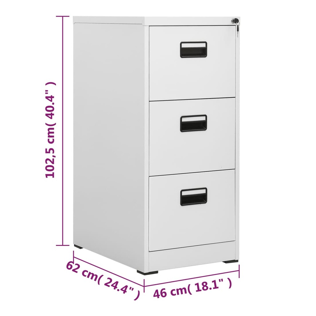 Cette armoire à dossiers, au design moderne, est idéale pour le rangement des dossiers. Cette armoire de bureau est fabriquée en acier, ce qui la rend durable ainsi que facile à nettoyer. Avec 3 tiroirs et 1 serrure, ce classeur vous permet de trier soigneusement vos fichiers dans différentes catégories et de garder les fichiers en sécurité. Les tiroirs avec 3 sections de roulement à billes assurent une ouverture et une fermeture en douceur, même avec une charge accrue, ces tiroirs peuvent être complètement étendus. Le classeur conviendra à tout décor de bureau grâce à son design emblématique.