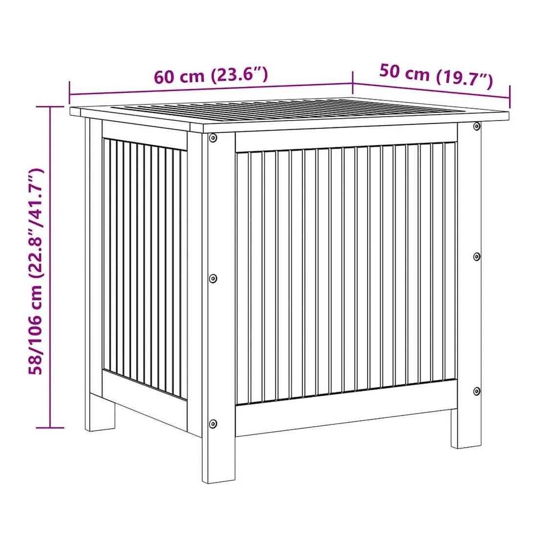 - Dimensions totales de la boîte : 60 x 50 x 58/106 cm (l x P x H)