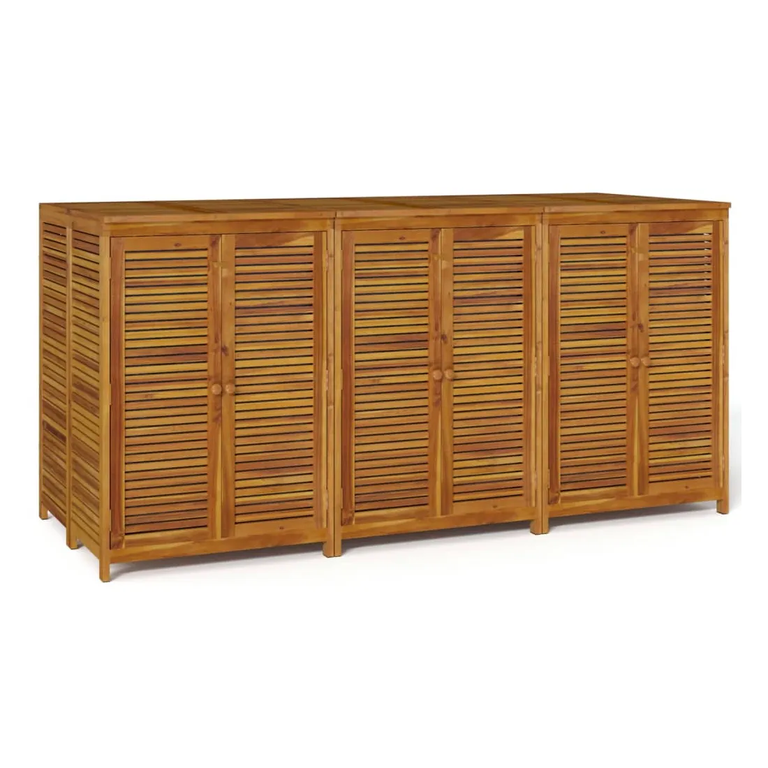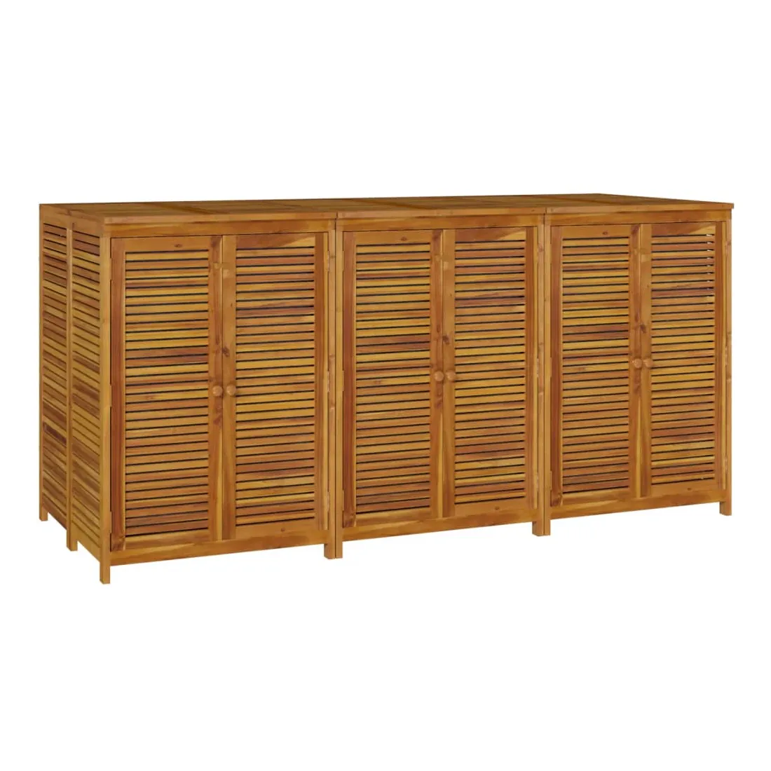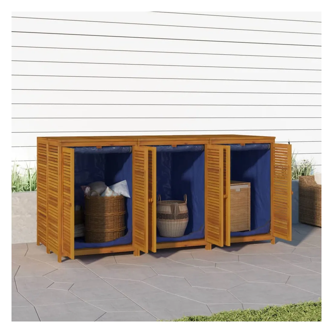 Cette boîte de rangement de jardin en bois est une solution de rangement idéale et un excellent supplément décoratif à votre espace de vie. Bois d'acacia massif : le bois d'acacia massif est un matériau naturel magnifique. Le bois d'acacia un bois dur tropical, qui est dense, robuste et durable.Grand espace de rangement : le coffre de rangement extérieur avec sacs intérieurs offre un grand espace de stockage pour ranger les coussins, les jouets des enfants, les outils de jardinage et d'autres accessoires, tout en gardant le contenu organisé.Conception pratique : la boîte à couvertures comporte des portes qui vous permettent de ranger et de retirer facilement des objets. De plus, le sac résistant à l'eau avec une fermeture éclair protège vos articles de l'humidité. Remarque :Pour que vos meubles d'extérieur restent beaux, nous vous recommandons de les protéger avec une housse imperméable.