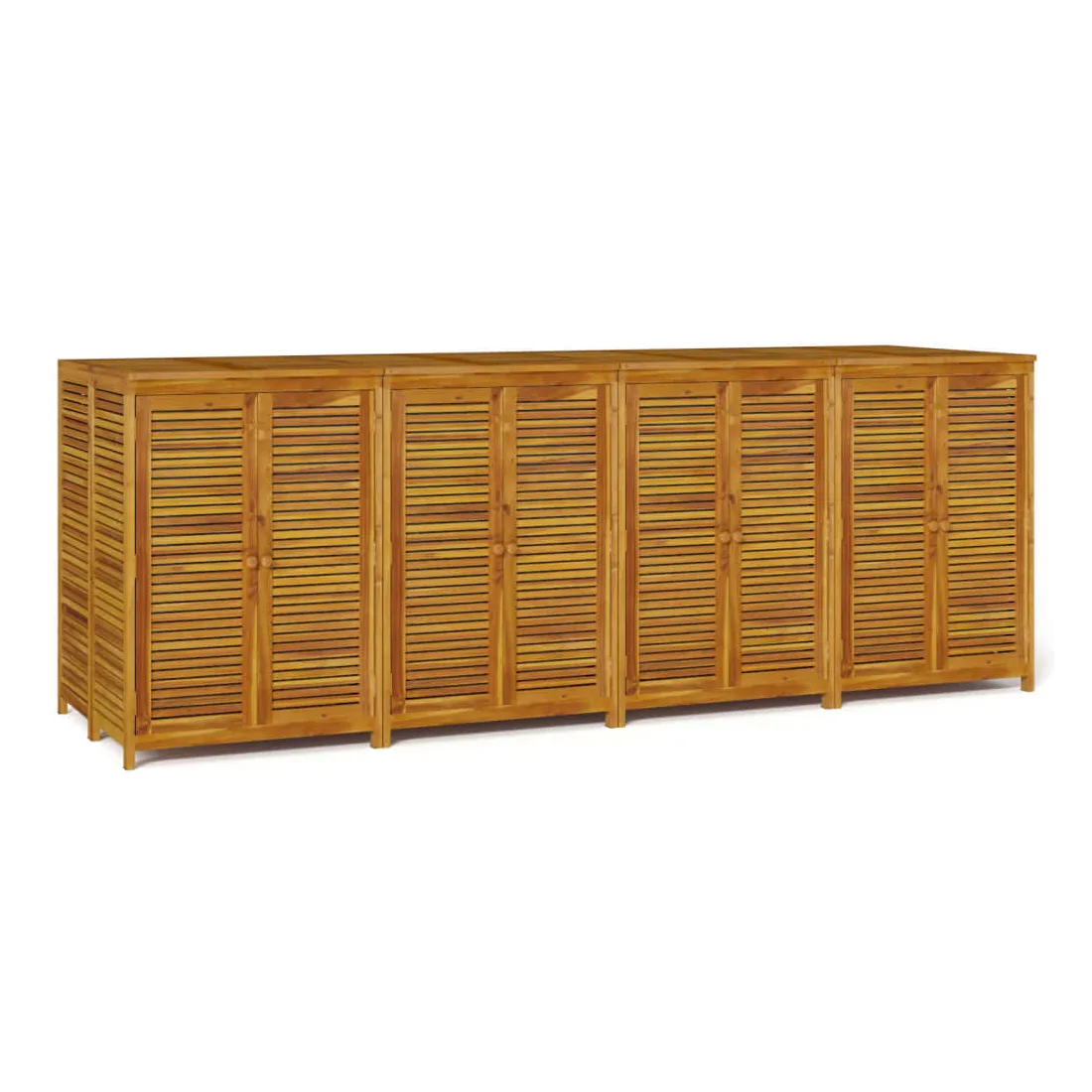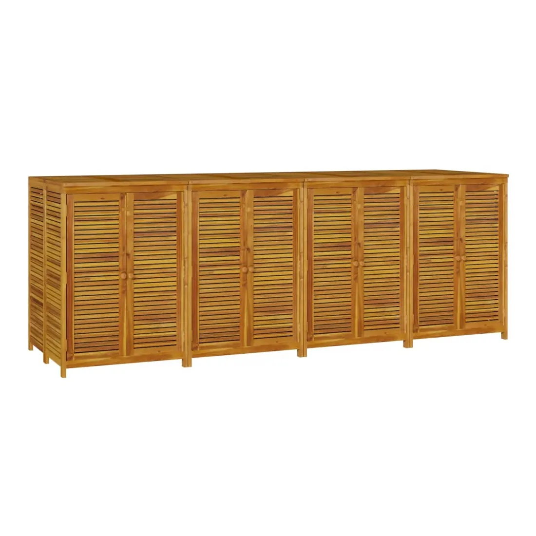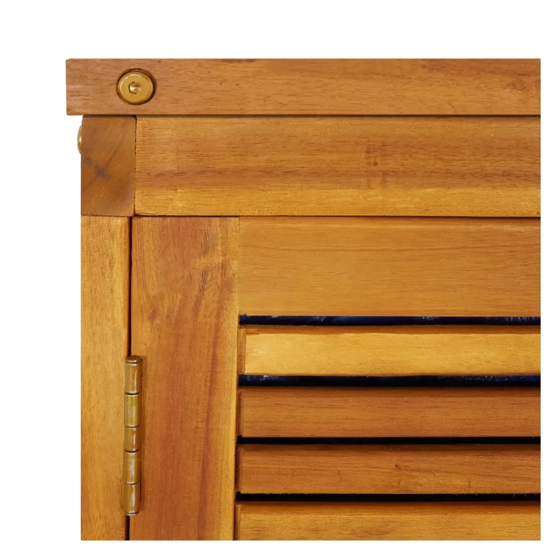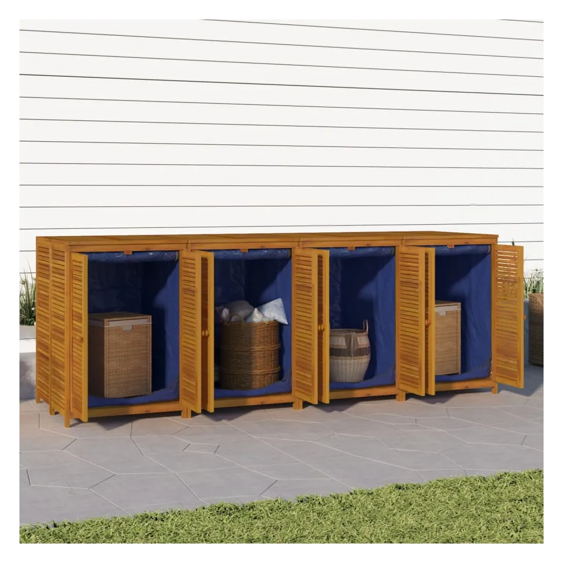 Cette boîte de rangement de jardin en bois est une solution de rangement idéale et un excellent supplément décoratif à votre espace de vie. Bois d'acacia massif : le bois d'acacia massif est un matériau naturel magnifique. Le bois d'acacia un bois dur tropical, qui est dense, robuste et durable.Grand espace de rangement : le coffre de rangement extérieur avec sacs intérieurs offre un grand espace de stockage pour ranger les coussins, les jouets des enfants, les outils de jardinage et d'autres accessoires, tout en gardant le contenu organisé.Conception pratique : la boîte à couvertures comporte des portes qui vous permettent de ranger et de retirer facilement des objets. De plus, le sac résistant à l'eau avec une fermeture éclair protège vos articles de l'humidité. Remarque :Pour que vos meubles d'extérieur restent beaux, nous vous recommandons de les protéger avec une housse imperméable.