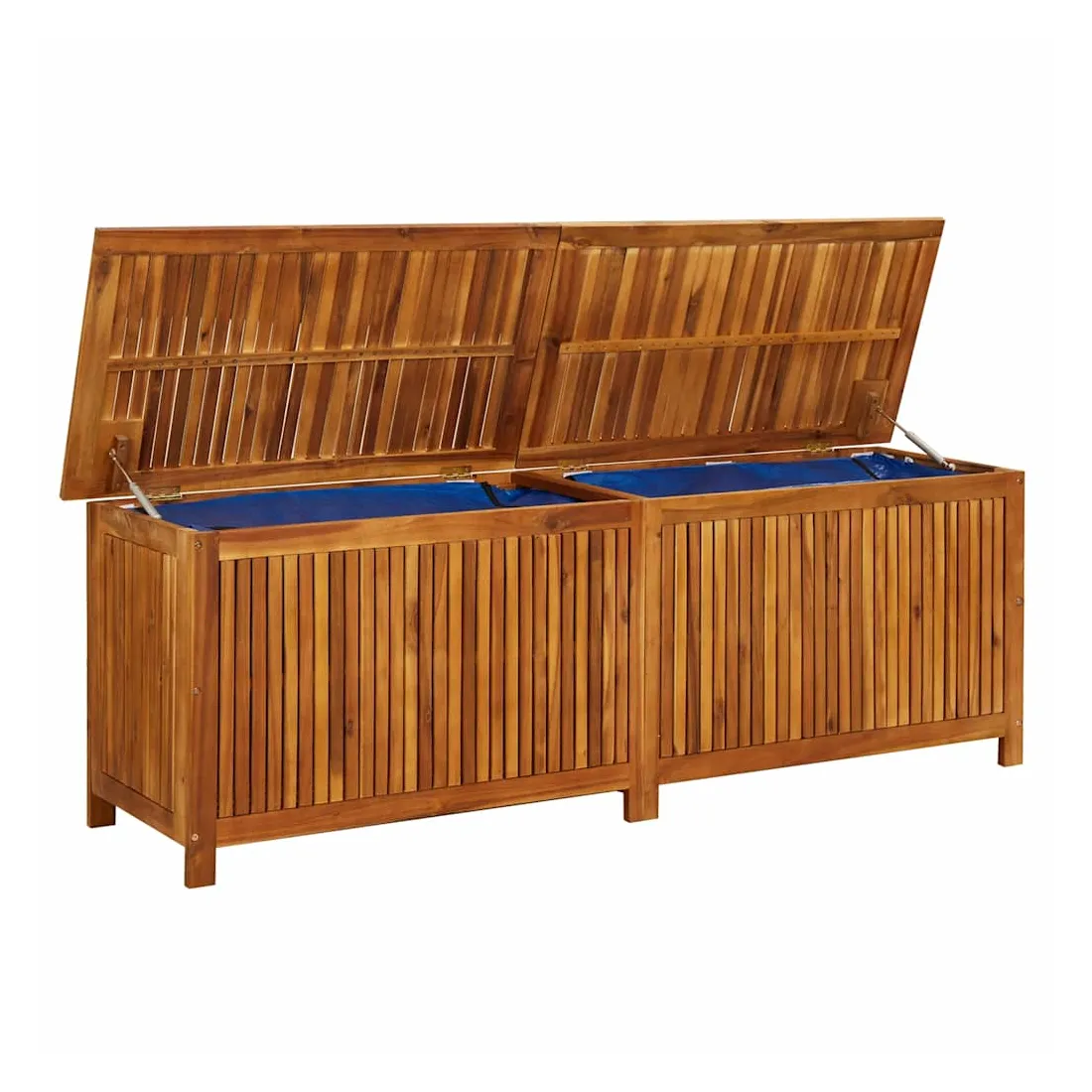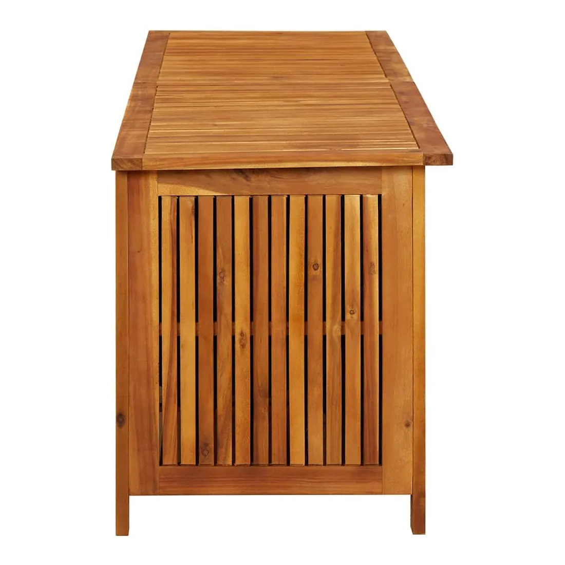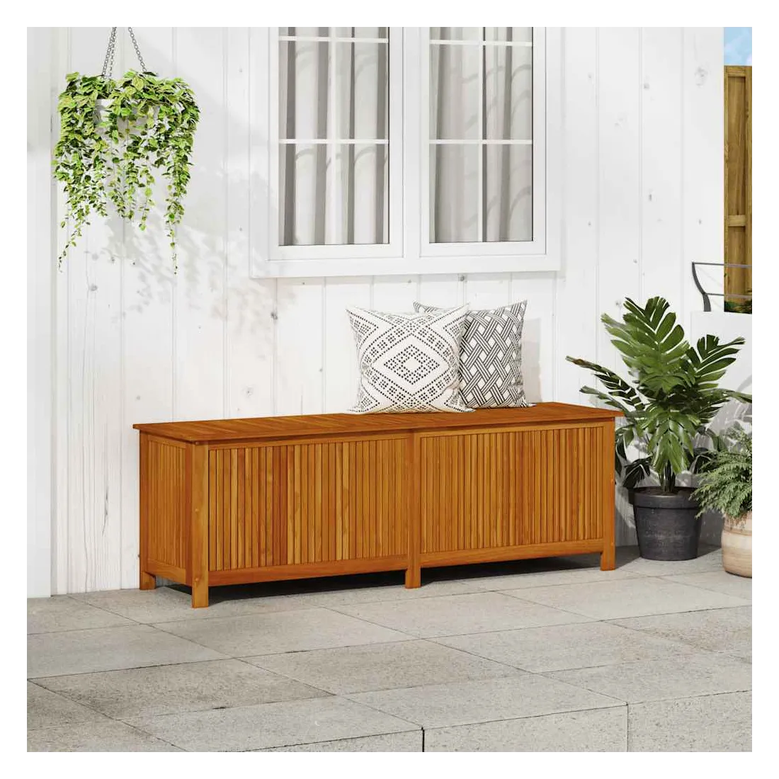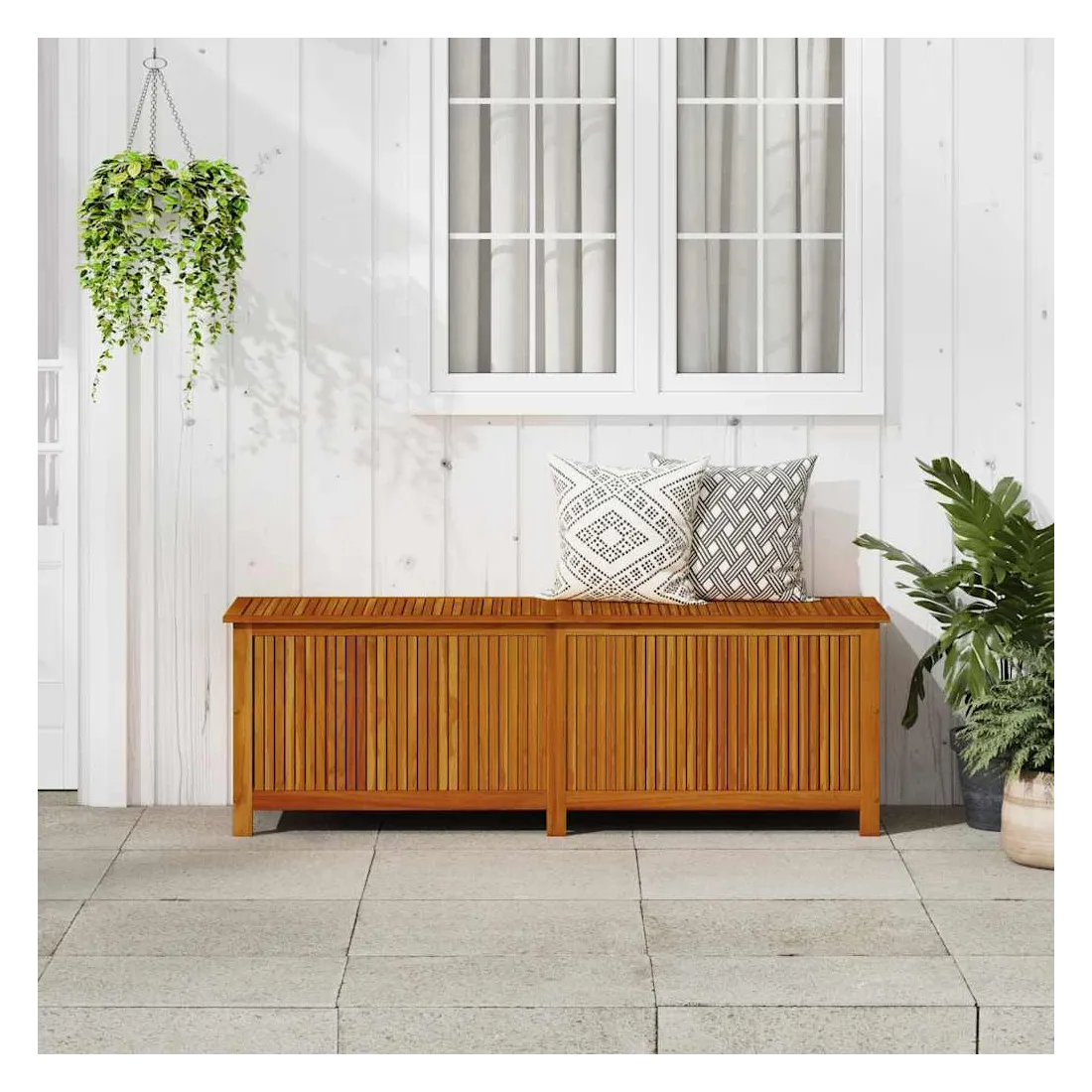 Êtes-vous à la recherche d'un moyen de rangement extérieur attrayant et polyvalent ? Alors cette boîte de rangement de jardin en bois est un choix idéal et est destinée à être un excellent supplément à votre espace de vie extérieur ou intérieur. Matériau robuste et durable : la boîte à oreillers est faite de bois d'acacia massif avec une finition à l'huile et avec un sac résistant à l'eau à l'intérieur avec fermeture à glissière, ce qui la rend résistante à l'usure, très durable et adaptée à une utilisation en plein air. Grand espace de rangement : elle offre également une solution de rangement idéale pour les coussins, les oreillers, les couvertures supplémentaires ou autres articles de maison ou de jardin à portée de main et bien organisés. Bon à savoir : Afin de prolonger la durée de vie de votre mobilier d'extérieur, nous vous recommandons de le protéger avec une housse imperméable.