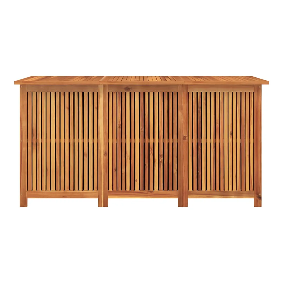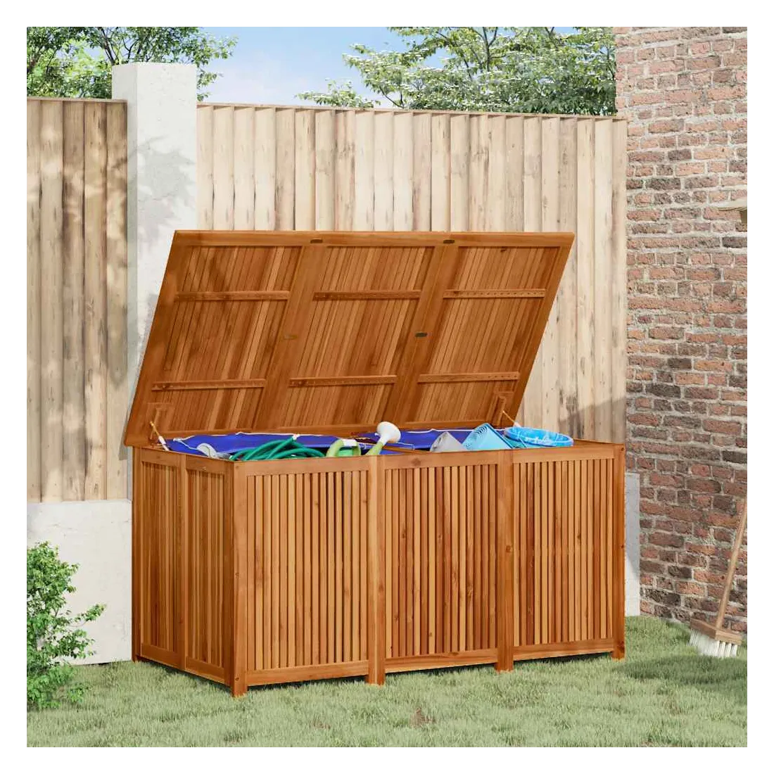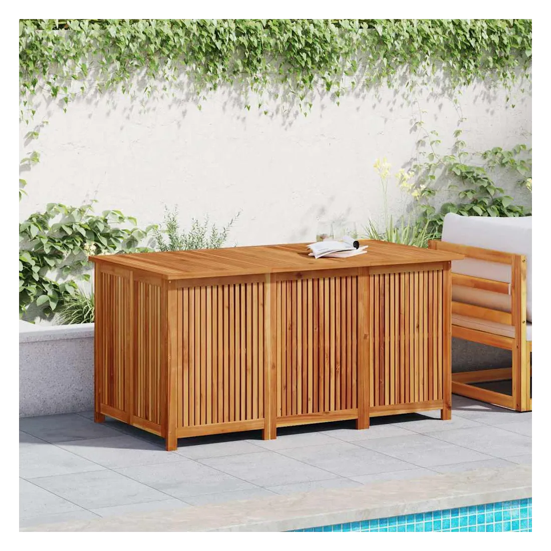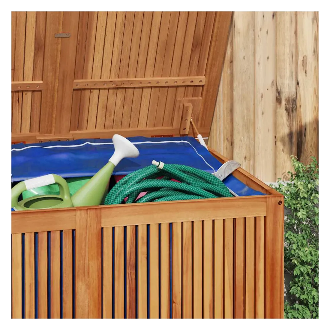 Cette boîte de rangement de jardin en bois offre un grand espace de rangement pour les coussins de meubles de jardin, les outils de jardinage et tout ce que vous aimez garder à portée de main dans l'espace de vie extérieur. Elle peut également être utilisée à l'intérieur. Bois d'acacia massif : la boîte de rangement en bois est fabriquée en bois d'acacia massif. Le bois d'acacia massif est un matériau naturel magnifique, dense, robuste et durable.Grand espace de rangement : l'espace de rangement facilite l'organisation des articles. Il convient au rangement de vos coussins, oreillers, couvertures et autres objets.Sac résistant à l'eau : le sac résistant à l'eau protège vos articles de l'humidité. Bon à savoir :Pour que vos meubles d'extérieur restent beaux, nous vous recommandons de les protéger avec une housse imperméable.