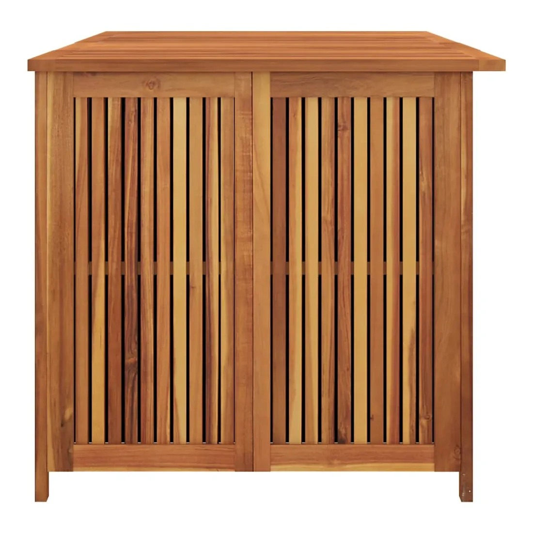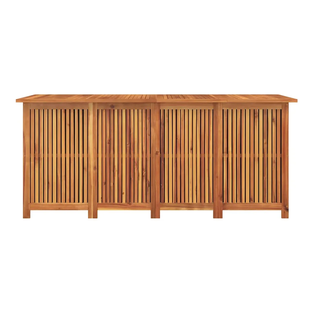 Cette boîte de rangement de jardin en bois offre un grand espace de rangement pour les coussins de meubles de jardin, les outils de jardinage et tout ce que vous aimez garder à portée de main dans l'espace de vie extérieur. Elle peut également être utilisée à l'intérieur. Bois d'acacia massif : la boîte de rangement en bois est fabriquée en bois d'acacia massif. Le bois d'acacia massif est un matériau naturel magnifique, dense, robuste et durable.Grand espace de rangement : l'espace de rangement facilite l'organisation des articles. Il convient au rangement de vos coussins, oreillers, couvertures et autres objets.Sac résistant à l'eau : le sac résistant à l'eau doté d'une fermeture éclair protège vos articles de l'humidité. Bon à savoir :Pour que vos meubles d'extérieur restent beaux, nous vous recommandons de les protéger avec une housse imperméable.