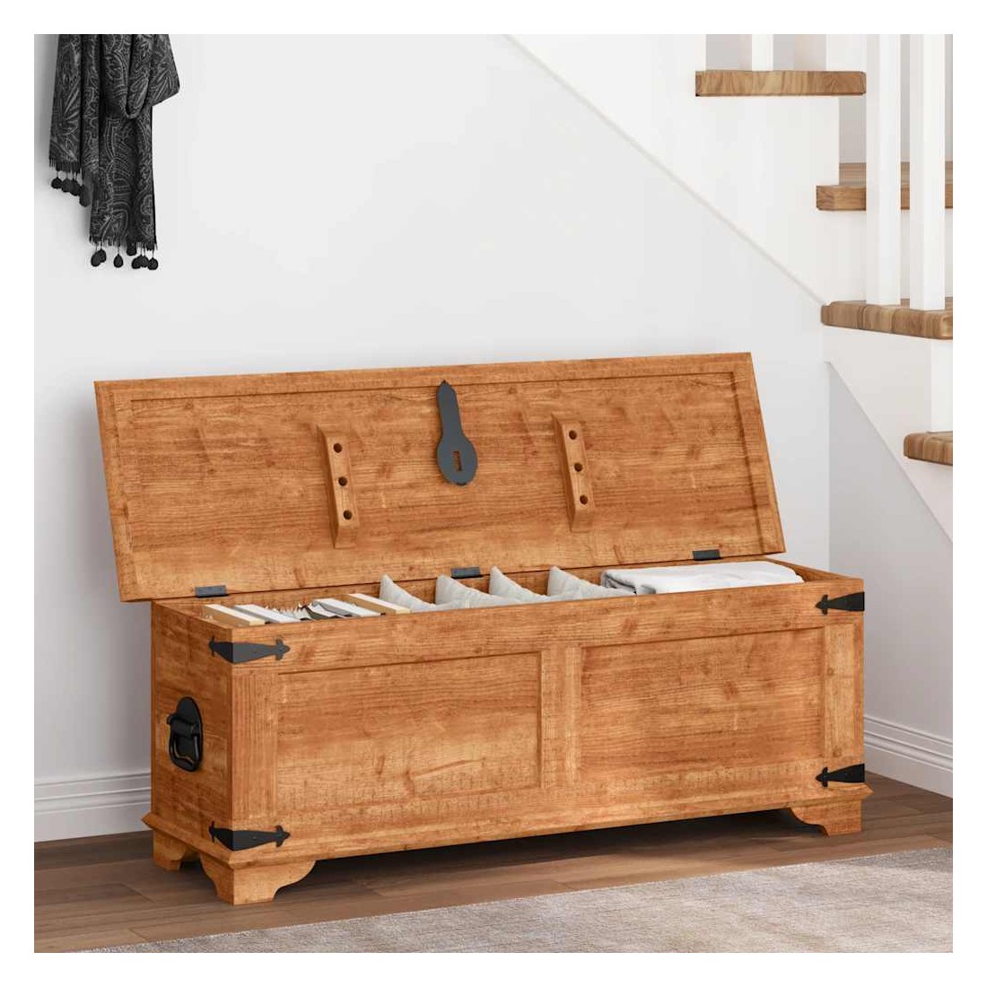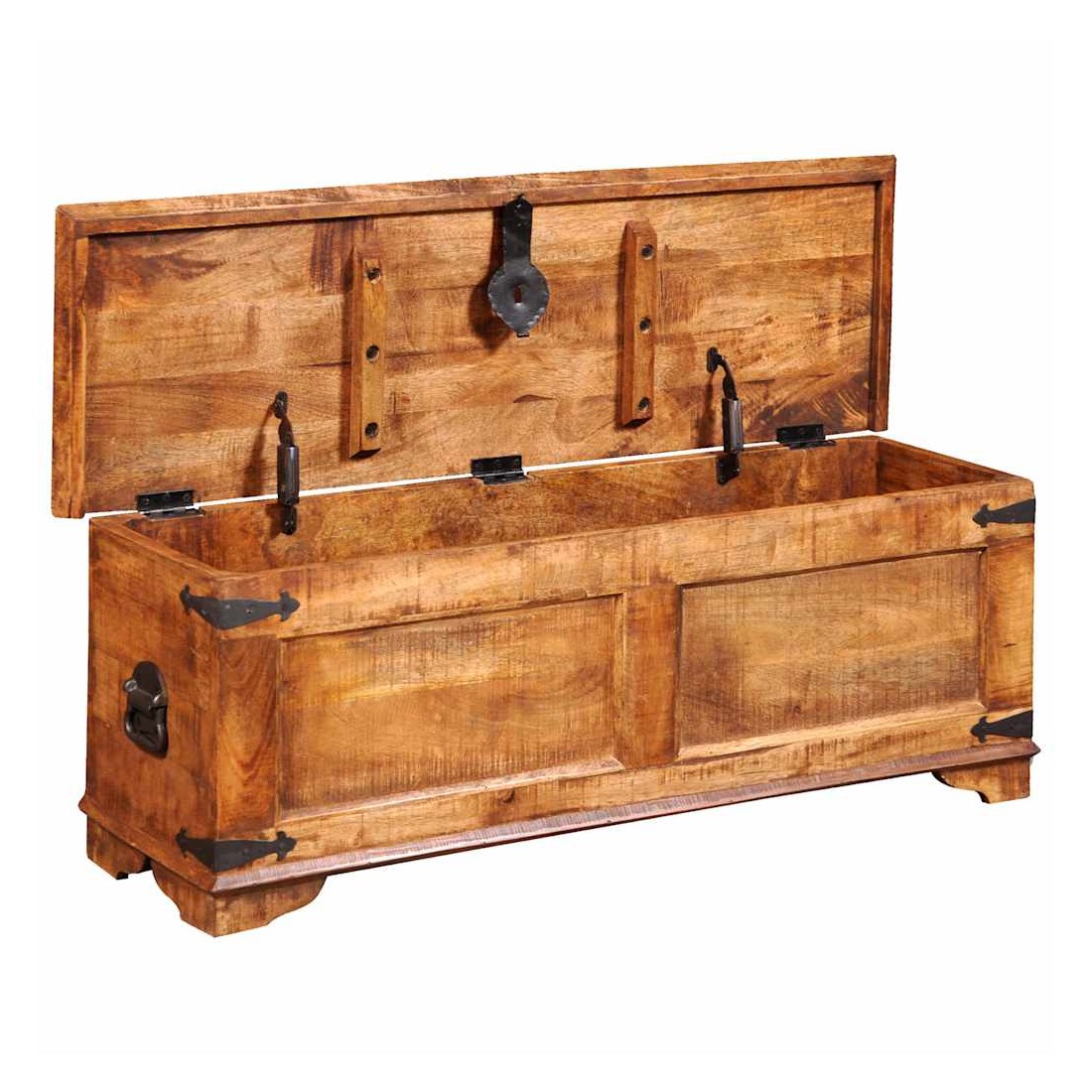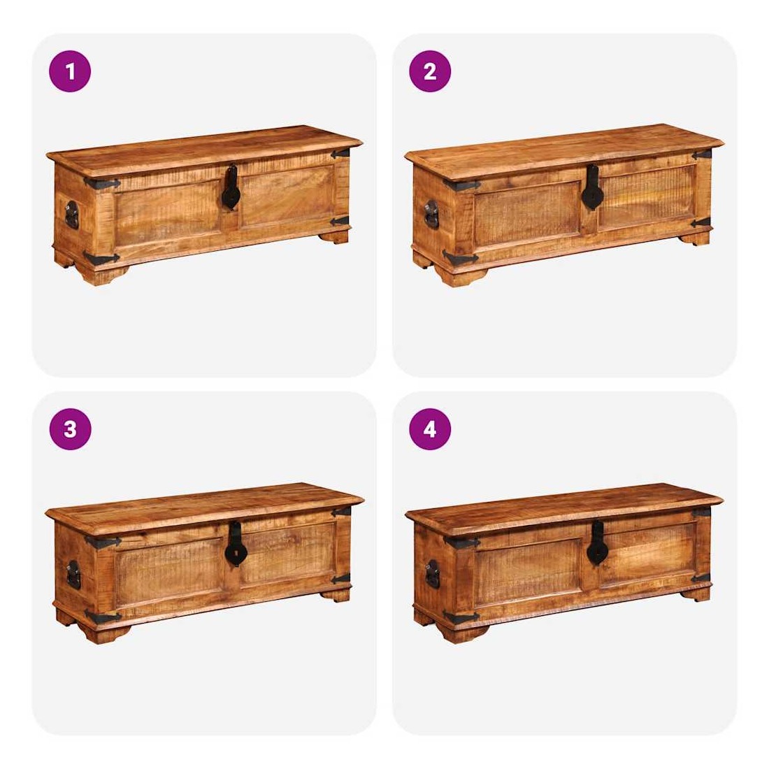 Ce coffre de rangement en bois de manguier brut, un accessoire intemporel pour votre maison, vous donnera amplement d'espace de rangement et vous aidera à garder vos affaires en ordre. Ce coffre de rangement est entièrement fait à la main en bois massif, ce qui signifie que chaque pièce est unique et légèrement différente de l'autre. Le bois de manguier brut est solide, stable, durable et beau. Remarque importante : les couleurs varient d'un meuble à l'autre, rendant chacun de nos coffres unique. La livraison est aléatoire, ce qui garantit l'exclusivité et l'individualité de votre produit.