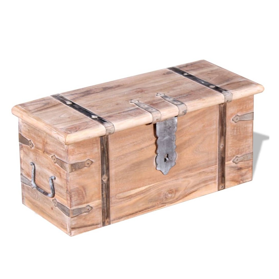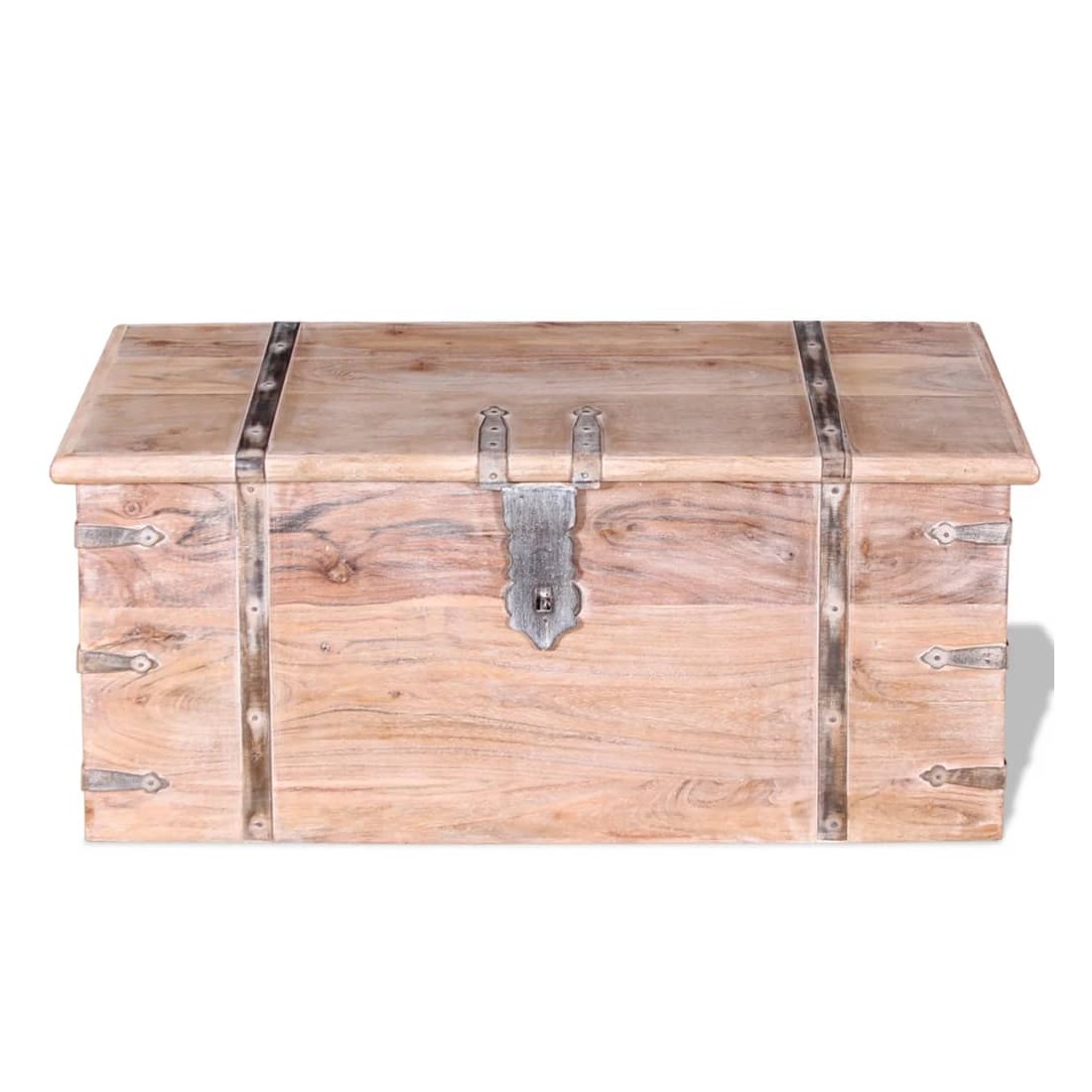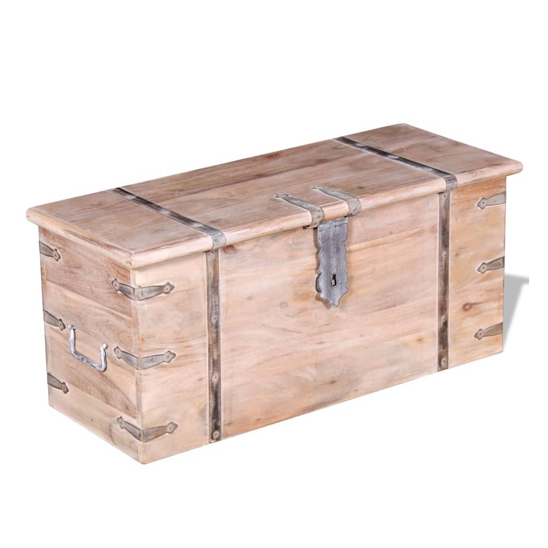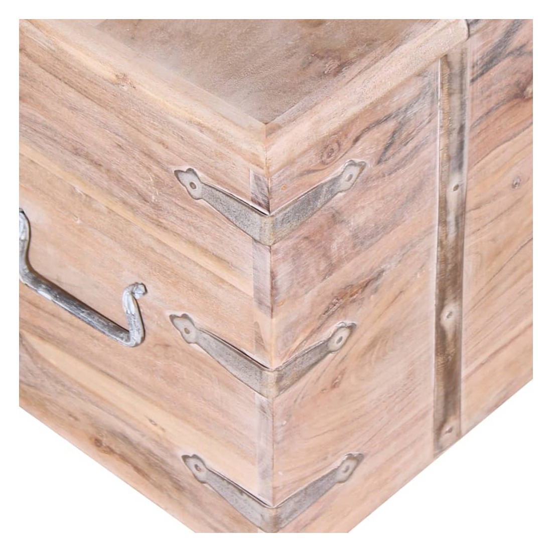 Cet ensemble unique de coffres de rangement, fait en bois d'acacia massif avec une finition blanche brossée, sera un excellent ajout à votre pièce. Ces coffres de rangement offrent suffisamment d'espace pour ranger des vêtements, des magazines, des livres, des outils et d'autres accessoires. Elles disposent d'un loquet situé à l'avant et deux poignées sur les côtés. Grâce à la stabilité du dessus plat, les boîtes en bois peuvent également être utilisées comme des tables basses, des tables auxiliaires, des tables de salon, des tables d'appoint, etc. Les coffres de rangement sont fabriqués à la main à partir de bois massif. Le superbe artisanat et les magnifiques grains du bois rendent chaque meuble unique et légèrement différent du suivant. La livraison comprend 2 coffres de rangement.