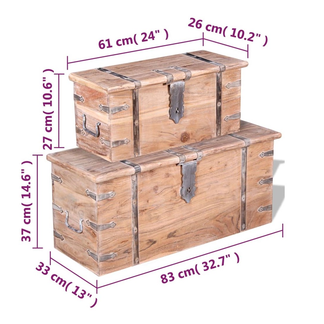 Ensemble de deux coffres de rangement Bois d'Acacia