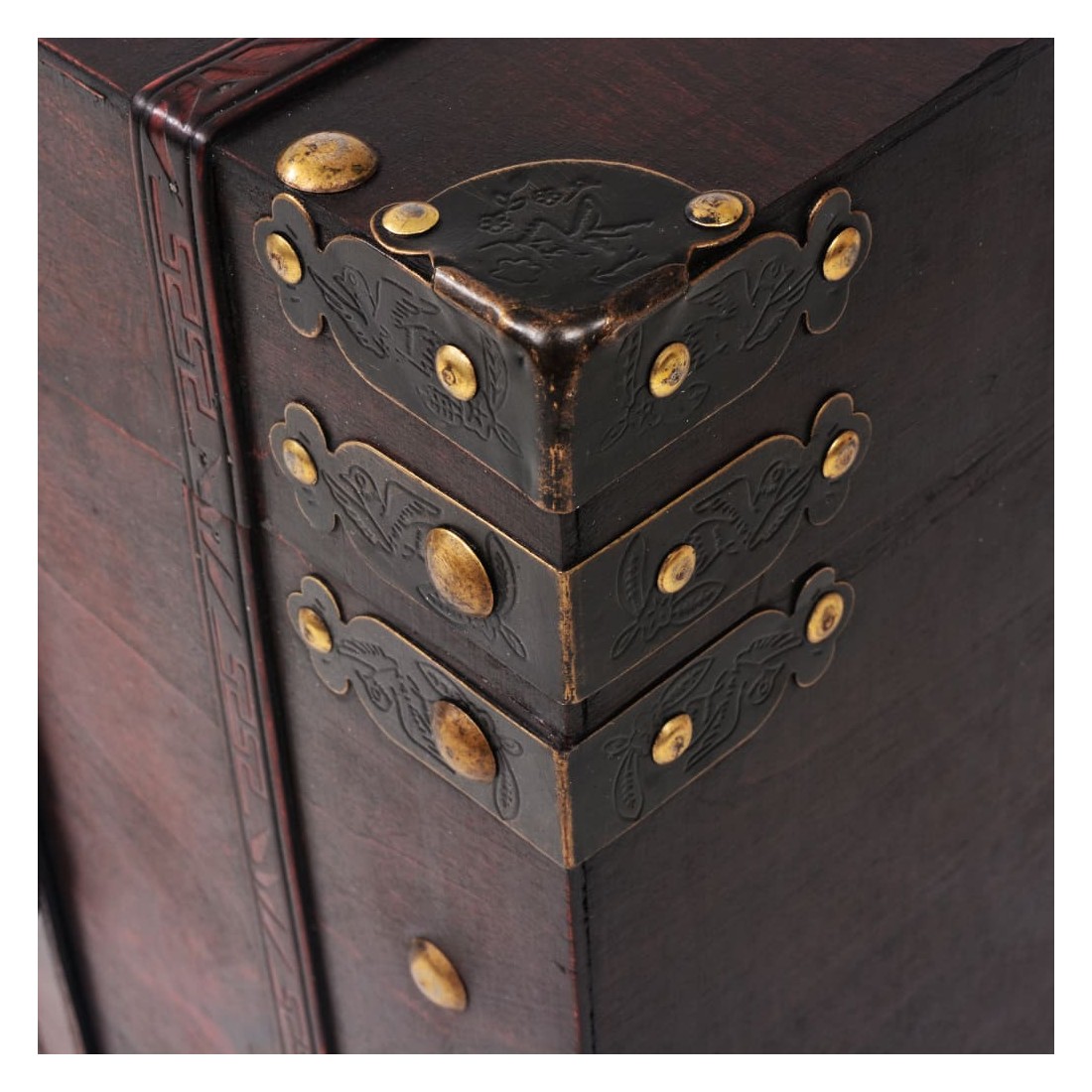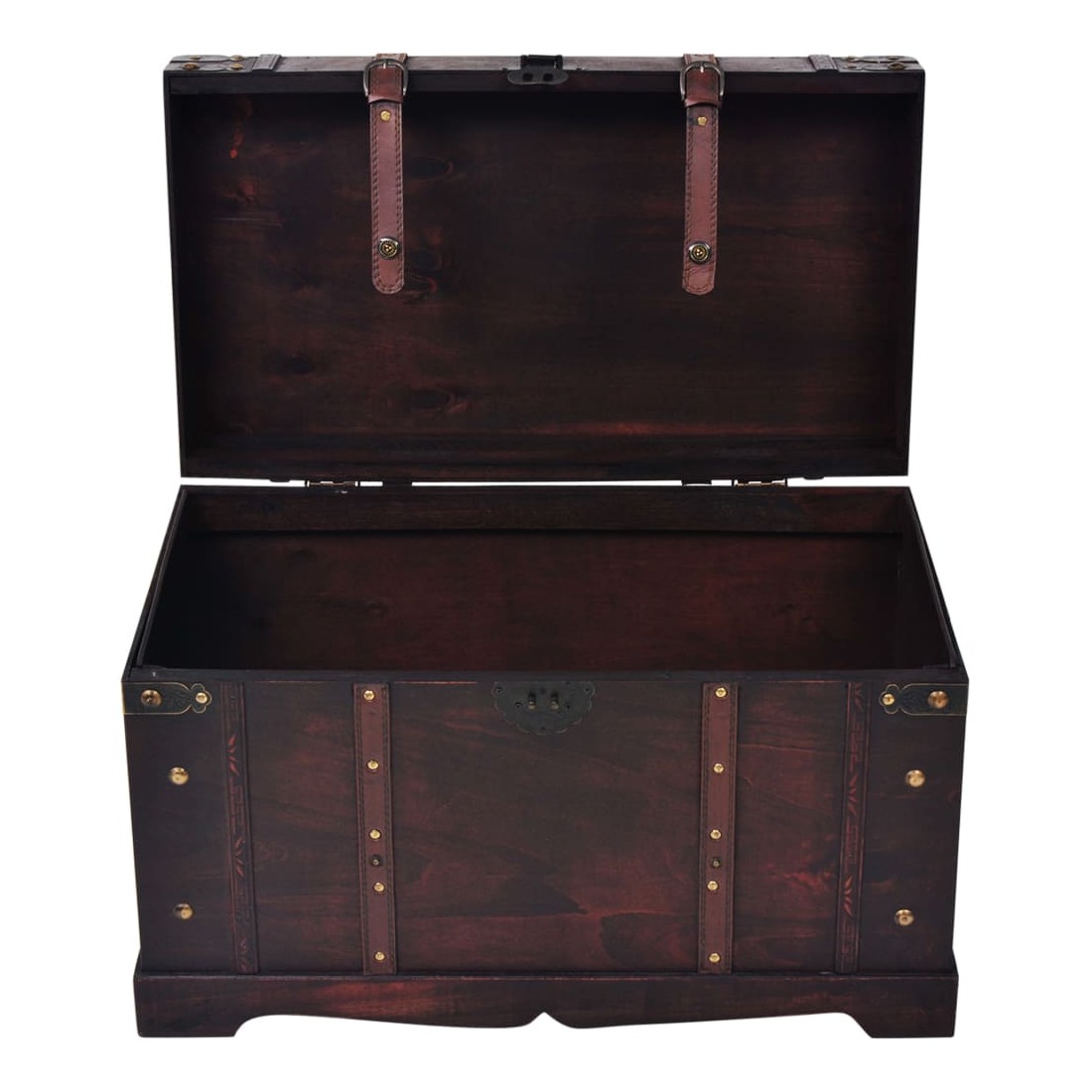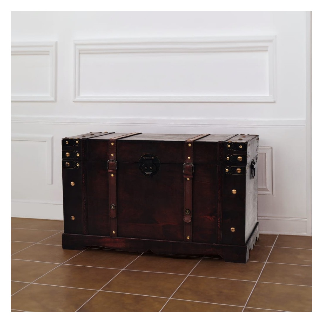 Ce beau coffre de rangement en style antique sera non seulement un supplément décoratif frappant à votre décor de salon ou de chambre à coucher, mais a également l'espace suffisant pour maintenir un éventail d'articles comme des vêtements, des magasins et des livres organisés et hors de vue. Il possède une fermeture à loquet pratique et est portable grâce à deux poignées latérales. Bon à savoir : ce coffre à trésors est uniquement destiné à un usage décoratif et n'est pas conçu pour servir de siège ou de marchepied.