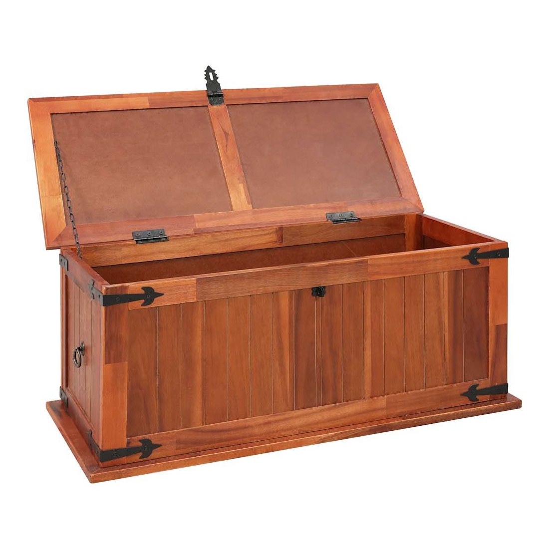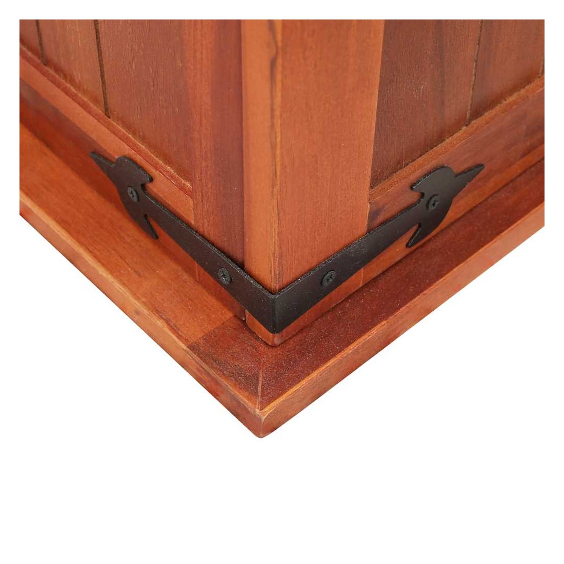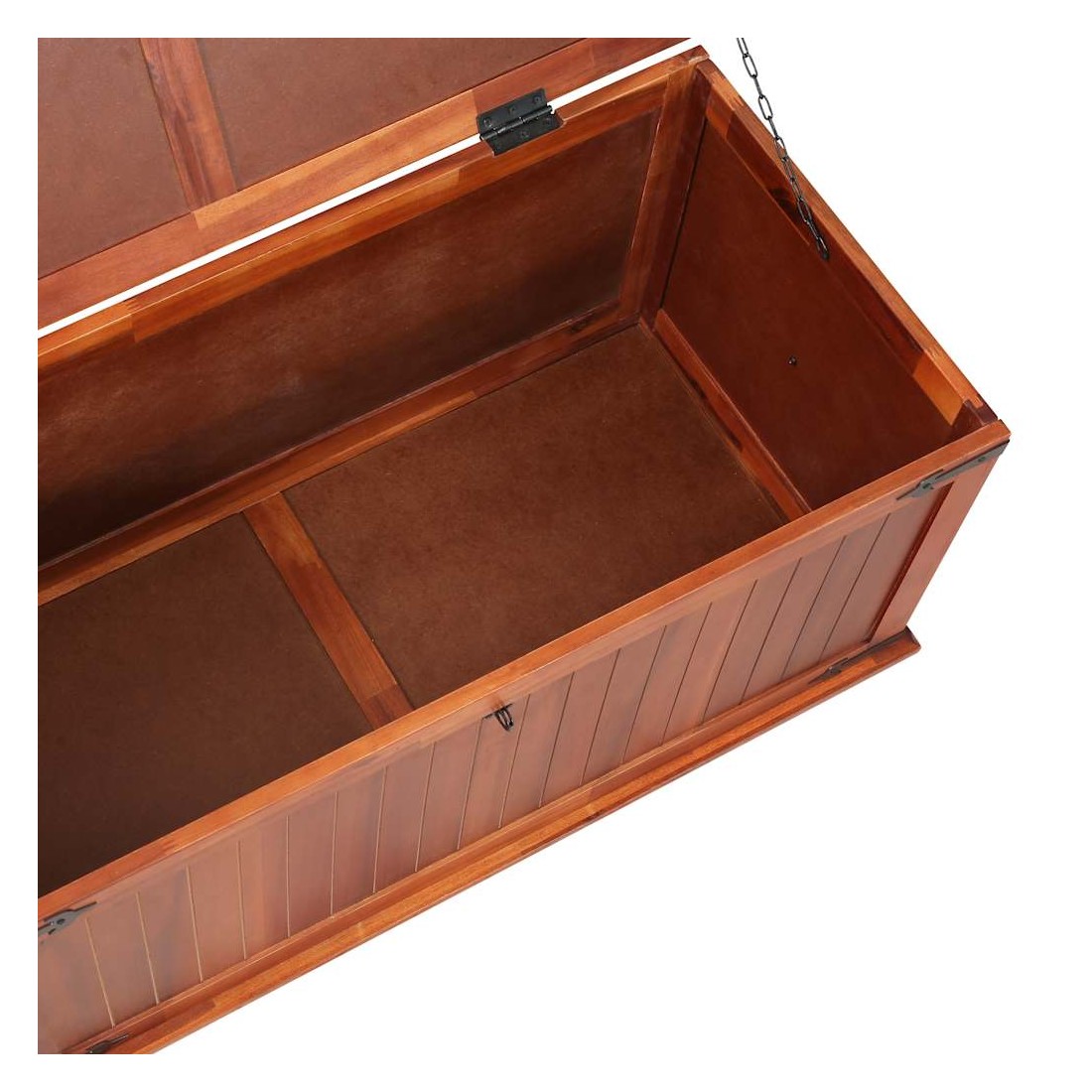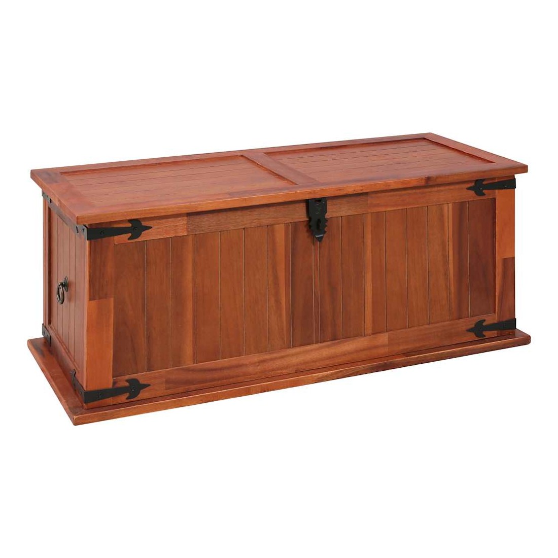 Ce coffre de rangement unique, en bois d'acacia solide et en MDF, sera un excellent supplément à votre pièce. Le coffre de rangement offre suffisamment d'espace pour ranger des vêtements, des magazines, des livres, des outils et d'autres accessoires. Il dispose d'un loquet situé à l'avant et de deux poignées sur les côtés. Grâce à la stabilité du dessus plat, cette boîte en bois peut également être utilisée comme une table basse, une table auxiliaire, une table de salon, une table d'appoint, etc. Le coffre de rangement a été fabriqué à la main en bois d'acacia solide. Le superbe artisanat et les magnifiques grains de bois rendent chaque meuble unique et légèrement différent l'un de l'autre.