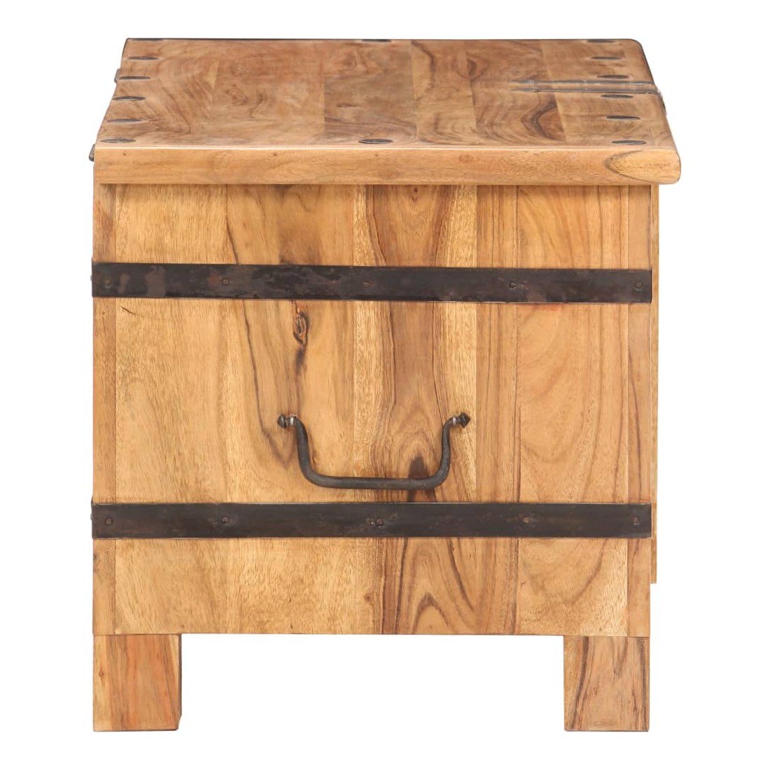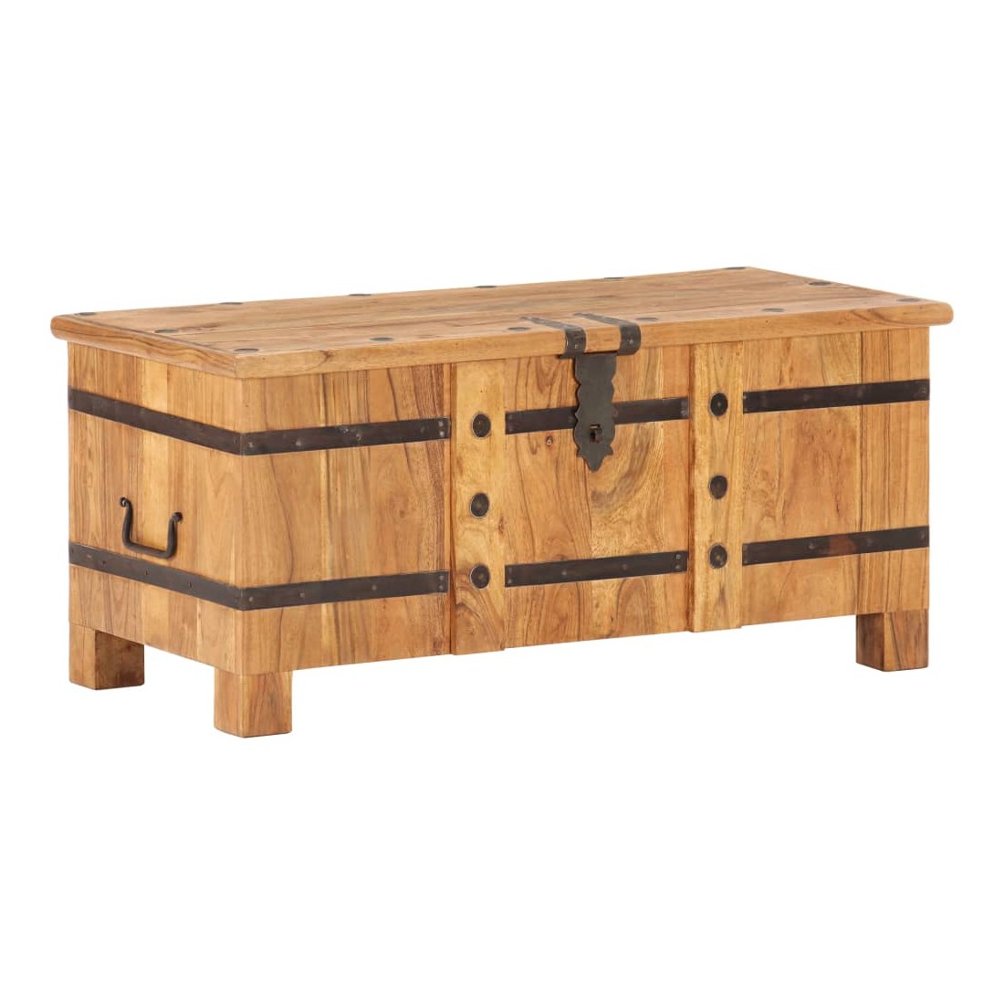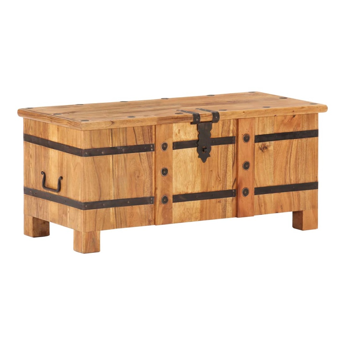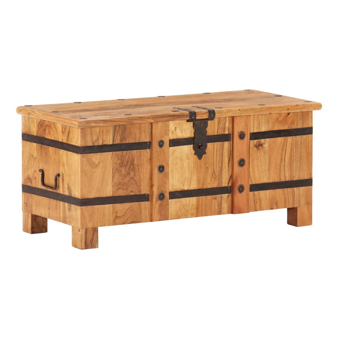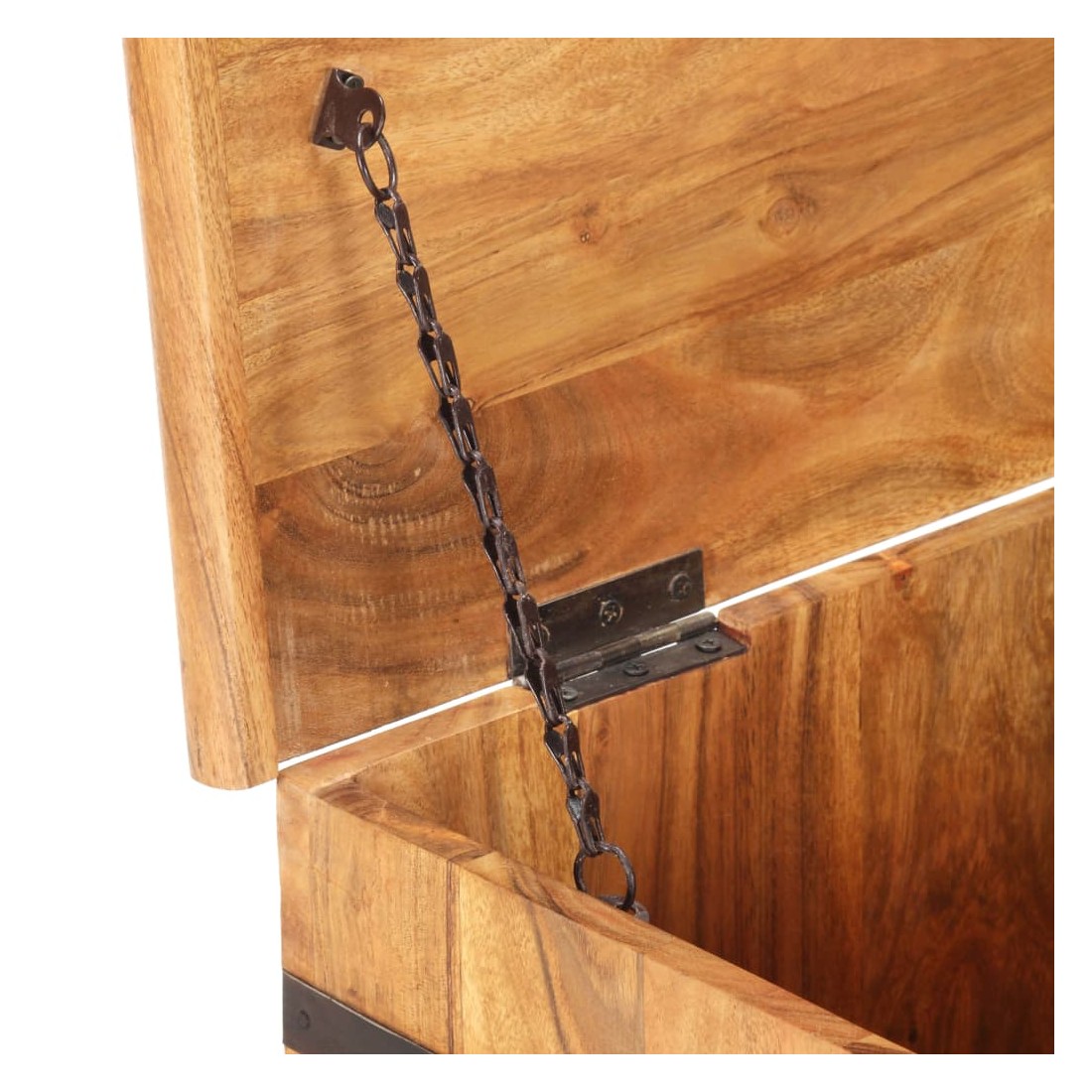 Le coffre en bois ajoute un aspect simpliste à votre décoration intérieure et offre un vaste espace de rangement pour les vêtements, magazines, livres, outils et autres accessoires. Ce coffre est en bois d’acacia massif, ce qui le rend stable et durable. Il a un loquet sur le devant et deux poignées sur le côté pour soulever le coffre. Cette boîte de rangement, avec un dessus plat stable, peut également être utilisée comme banc d’entrée. Le savoir-faire artisanal et les belles veines du bois rendent chaque meuble unique et légèrement différent l'un de l'autre. Remarque importante : les couleurs et les grains peuvent varier d'une pièce à l'autre, rendant chaque pièce unique. La livraison est aléatoire, ce qui garantit l'exclusivité et l'individualité de votre produit.
