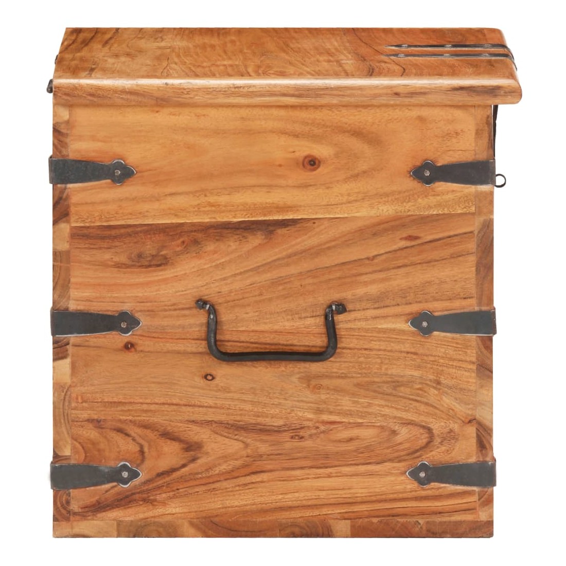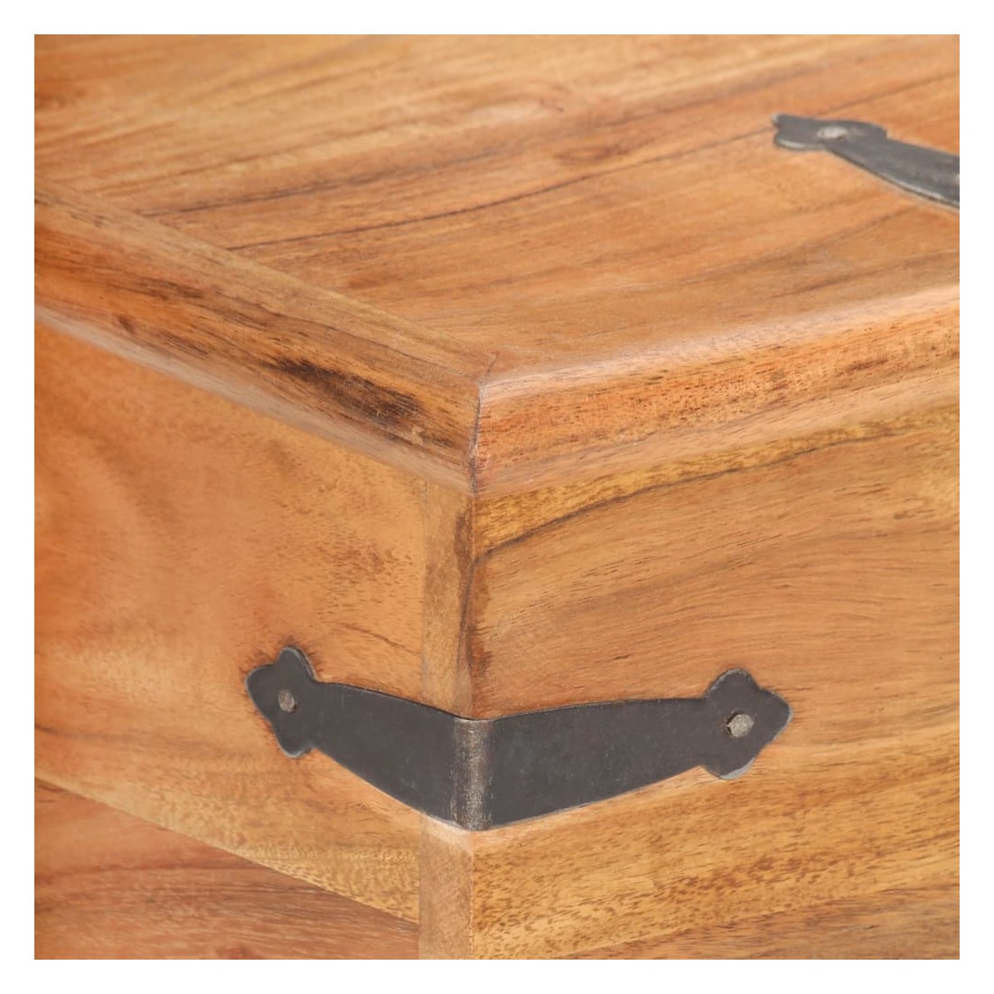 Le coffre en bois ajoute un aspect simpliste à votre décoration intérieure et offre un vaste espace de rangement pour vos objets. Le coffre est en bois d’acacia massif, ce qui le rend stable et durable. Il a un loquet sur le devant et deux poignées sur le côté pour le soulever. Cette boîte de rangement, avec un dessus plat stable, peut également être utilisée comme table de chevet. Le savoir-faire artisanal et les belles veines du bois rendent chaque meuble unique et légèrement différent l'un de l'autre. Remarque importante : les couleurs et les grains peuvent varier d'une pièce à l'autre, rendant chaque pièce unique ; la livraison est aléatoire.