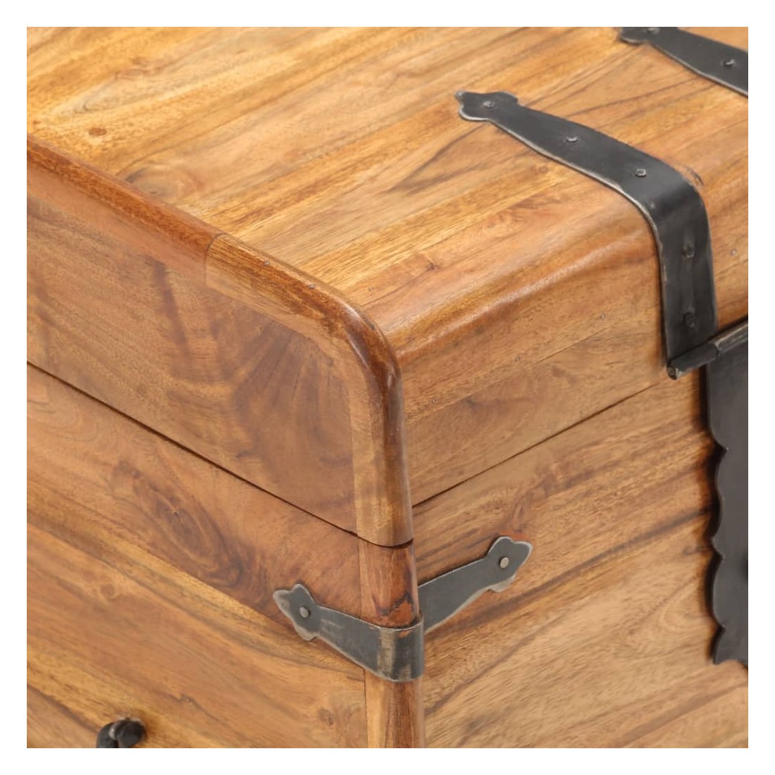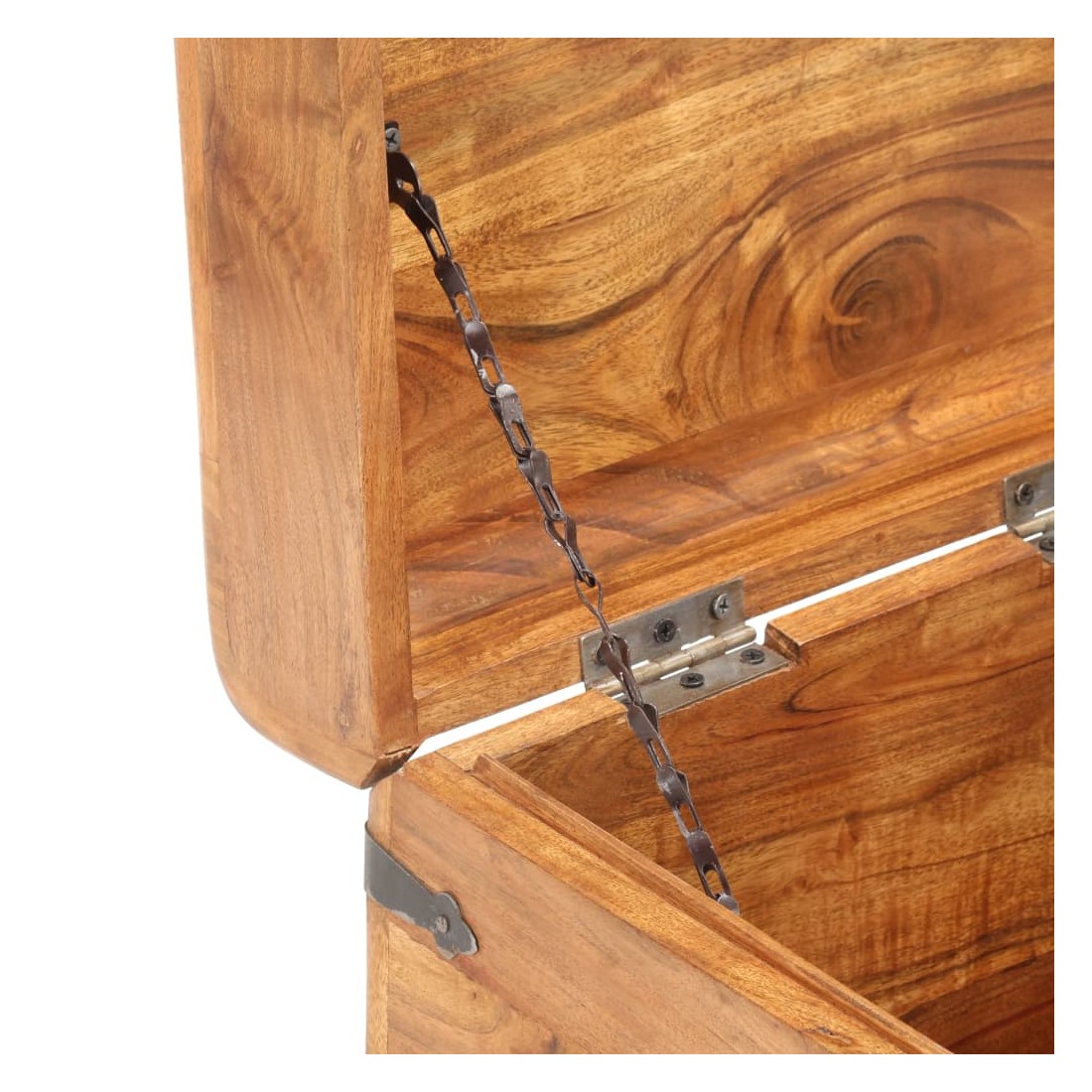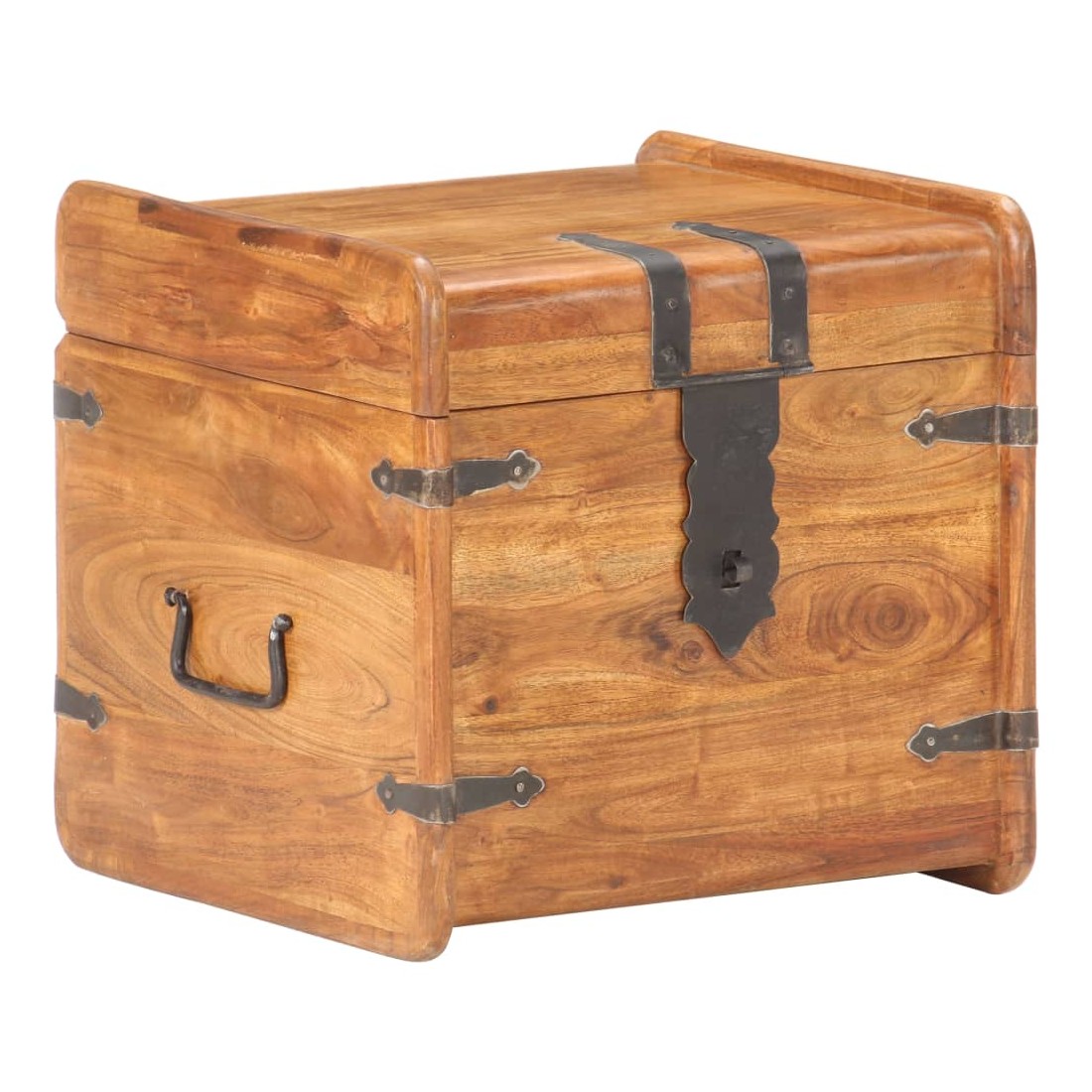 Le coffre en bois ajoute un aspect simpliste à votre décoration intérieure et offre un vaste espace de rangement pour vos objets. Le coffre est en bois d’acacia massif, ce qui le rend stable et durable. Il a un loquet sur le devant et deux poignées sur le côté pour le soulever. Cette boîte de rangement, avec un dessus plat stable, peut également être utilisée comme table de chevet. Le savoir-faire artisanal et les belles veines du bois rendent chaque meuble unique et légèrement différent l'un de l'autre. Remarque importante : les couleurs et les grains peuvent varier d'une pièce à l'autre, rendant chaque pièce unique. La livraison est aléatoire, ce qui garantit l'exclusivité et l'individualité de votre produit.