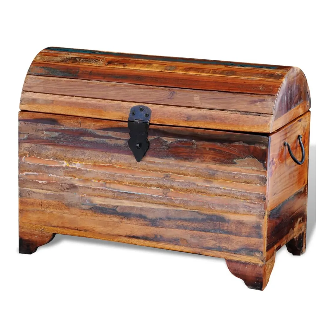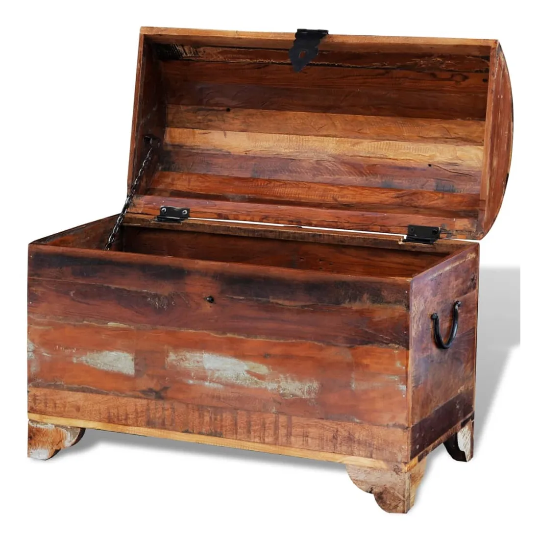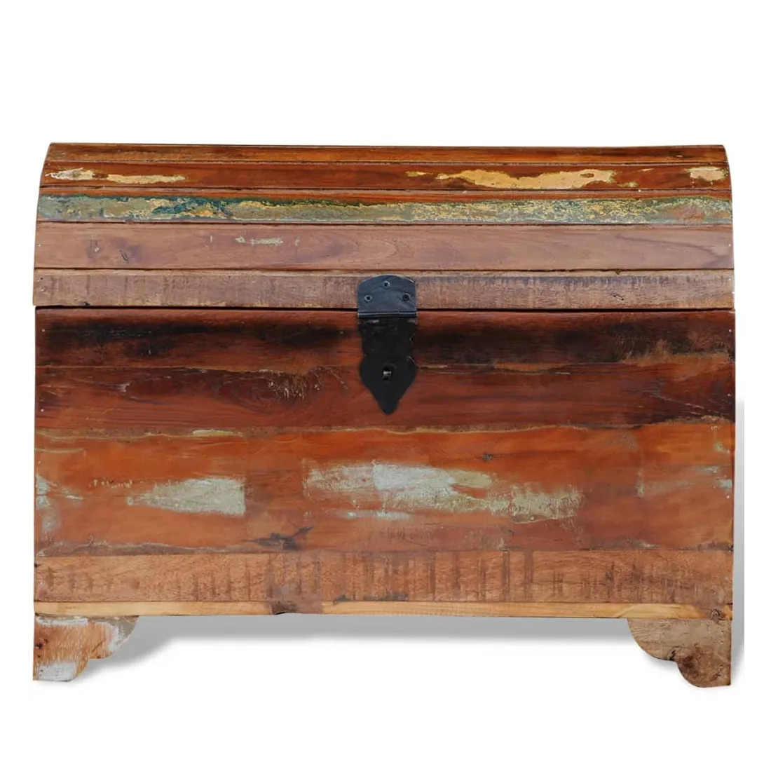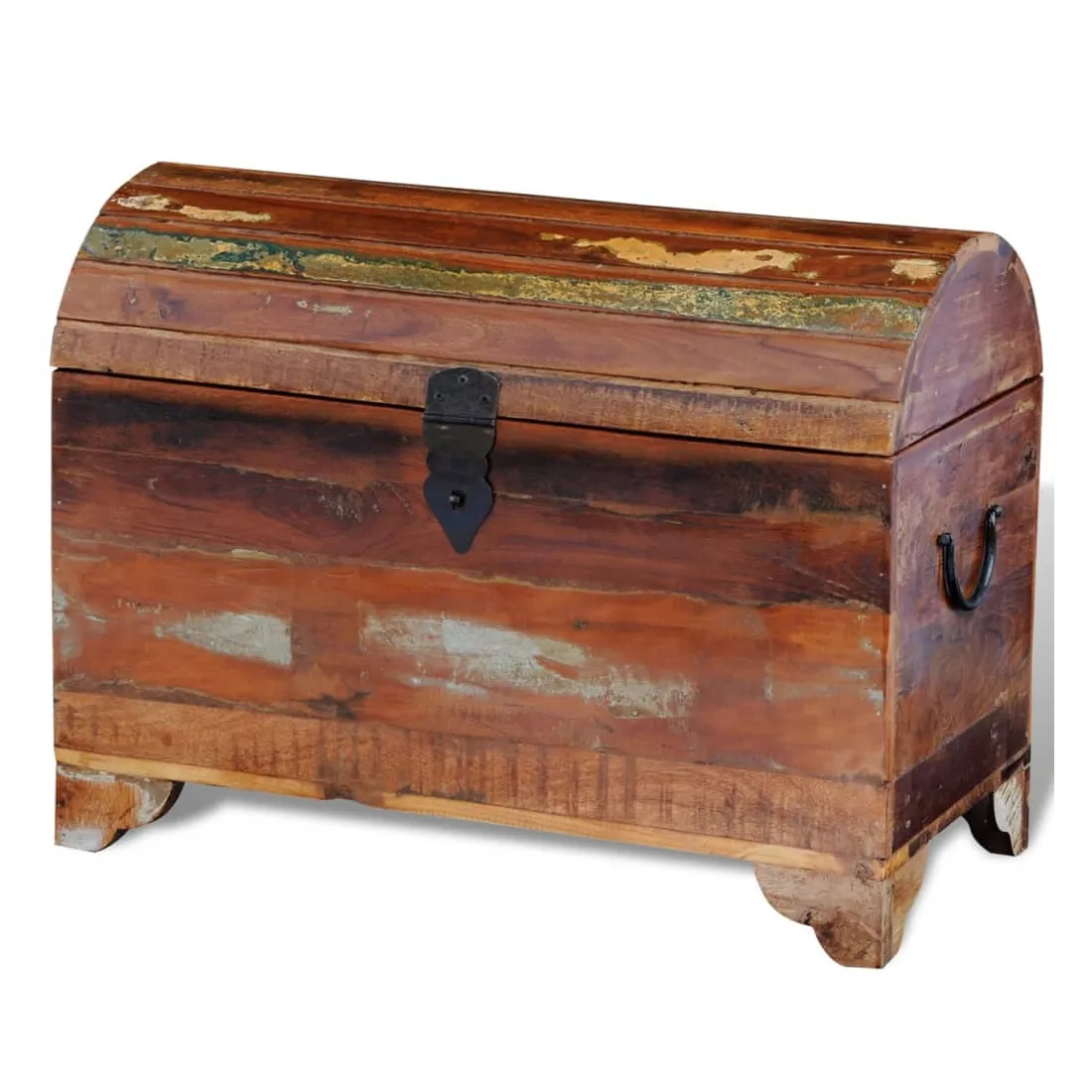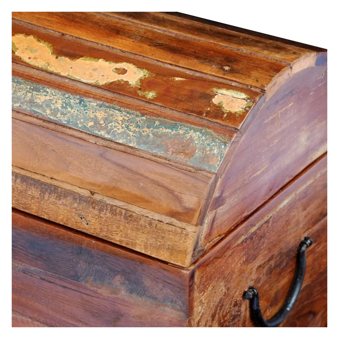 Ce coffre de rangement en bois de style antique, un accessoire attrayant pour votre maison, apporte un grand espace de rangement et vous aidera sûrement à maintenir vos articles en bon état. Ce coffre de rangement est fait de bois de récupération, ce qui signifie que chaque meuble est unique et légèrement différent l'un de l'autre. Le mobilier fabriqué en bois de récupération a des caractéristiques de différents bois comme le bois de teck, l'acacia, le bois de manguier, le bois de saal etc. Le bois de récupération est solide, stable, durable et beau. Les trous de clous ou les grains à face claire apportent leur histoire avec eux et invitent une autre génération à les imprégner de leurs. Garder ce meuble à la maison montrera votre concept de conservation des ressources, de protection de l'environnement et de développement durable. L'artisanat fait à la main pur ajoute le style spectaculaire vintage au coffre de rangement et vous accueille avec un aspect exotique. Chaque processus de recombinaison, de polissage, de peinture et de cirage est minutieusement préparé. Le coffre de rangement en style antique sera certainement un supplément parfait à votre maison ! Remarque importante : les couleurs varient d'un meuble à l'autre, rendant chacun de nos coffres unique. La livraison est aléatoire, ce qui garantit l'exclusivité et l'individualité de votre produit.