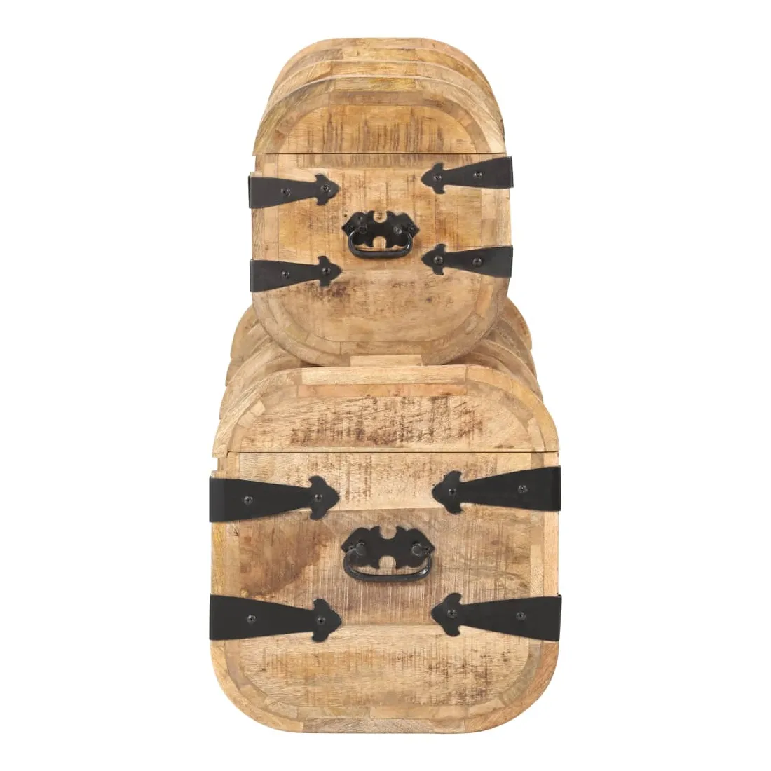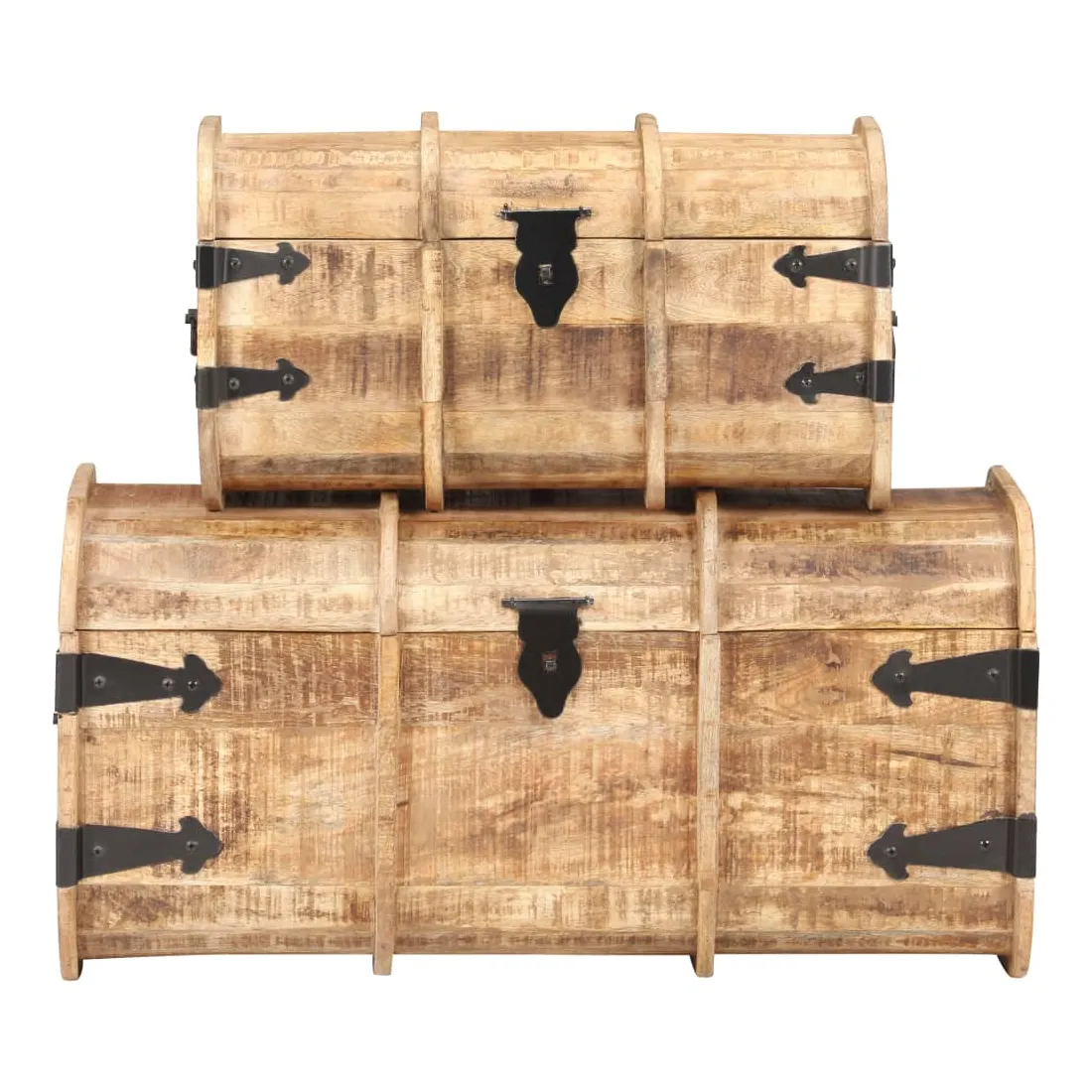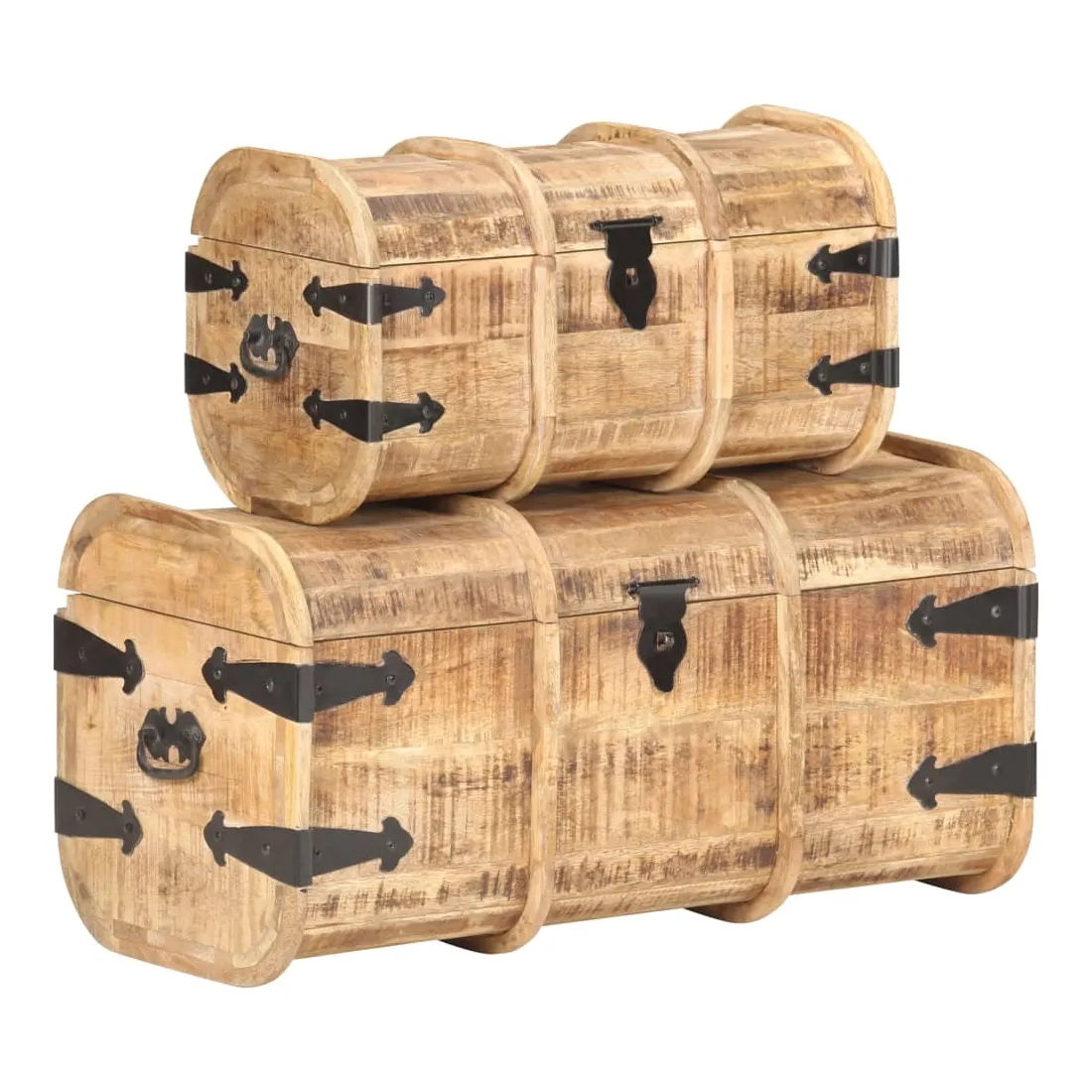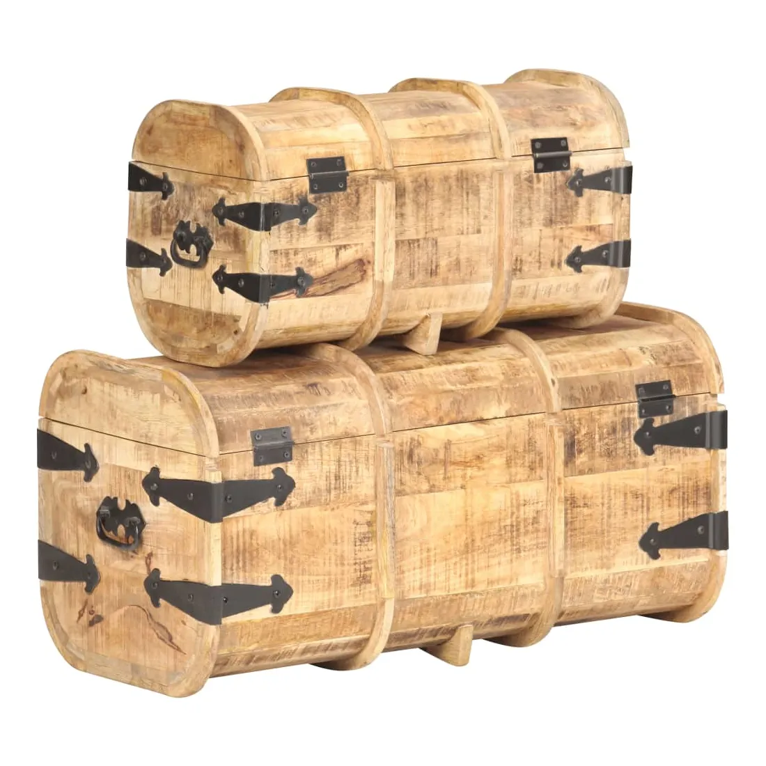 Cet ensemble de 2 coffres de rangement en bois tendance, un accessoire intemporel pour votre maison, vous offre suffisamment d’espace de rangement pour garder vos affaires en ordre. Le bois de manguier massif est un bois dur tropical. Il a la force de soutenir le poids et résiste également à l'usure du temps. De plus, le savoir-faire exquis et les beaux grains de bois rendent chaque pièce de coffre légèrement différente l'une de l'autre. Chaque coffre en bois comporte un loquet à l’avant et deux poignées pratiques sur le côté. Remarque importante : Les couleurs varient d'un meuble à l'autre, rendant chacun de nos coffres unique. La livraison est également aléatoire.
