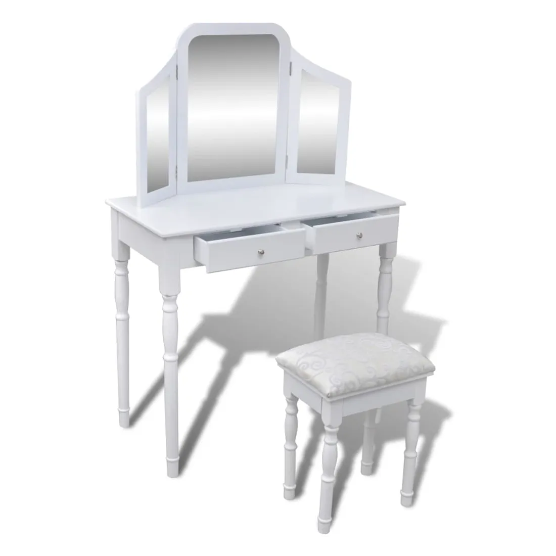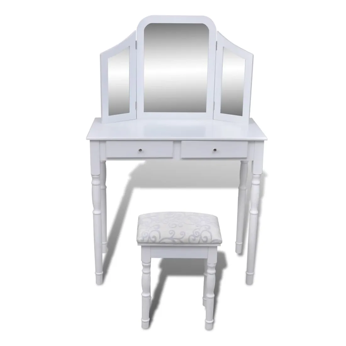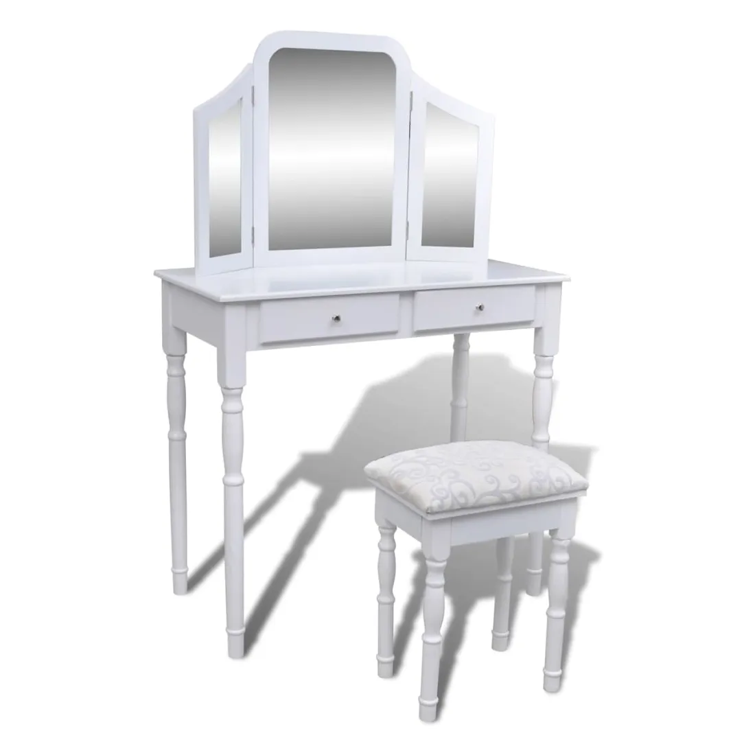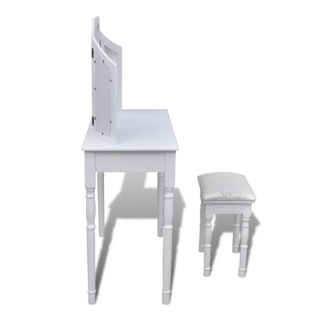 Coiffeuse avec miroir et tabouret 2 tiroirs Blanc