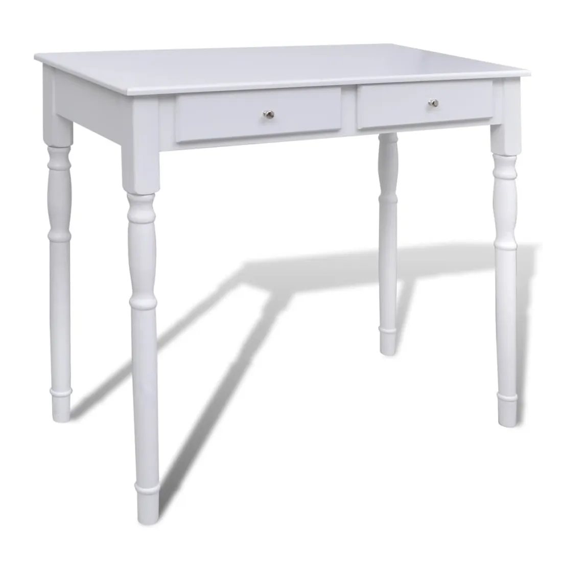 Cet ensemble de coiffeuse et de tabouret est fait de bois de pin de haute qualité. Son style victorien et sa finition blanche et propre apporteront élégance et beauté à votre boudoir ou vestiaire. L'artisanat exquis est une autre caractéristique remarquable de cet ensemble de table et de tabouret. Nous avons un miroir de table 3 en 1, 2 miroirs latéraux sont pliables avec des charnières durables. Vous êtes en mesure de les tourner à l'angle désiré. Le cadre du miroir et la table peuvent être utilisés séparément. Deux tiroirs chic vous offrent un espace supplémentaire pour vos ornements, cosmétiques et autres effets personnels. Cet ensemble de coiffeuse et de tabouret attireront tous les regards. Il sera assez facile à assembler avec les accessoires de montage inclus dans la livraison.