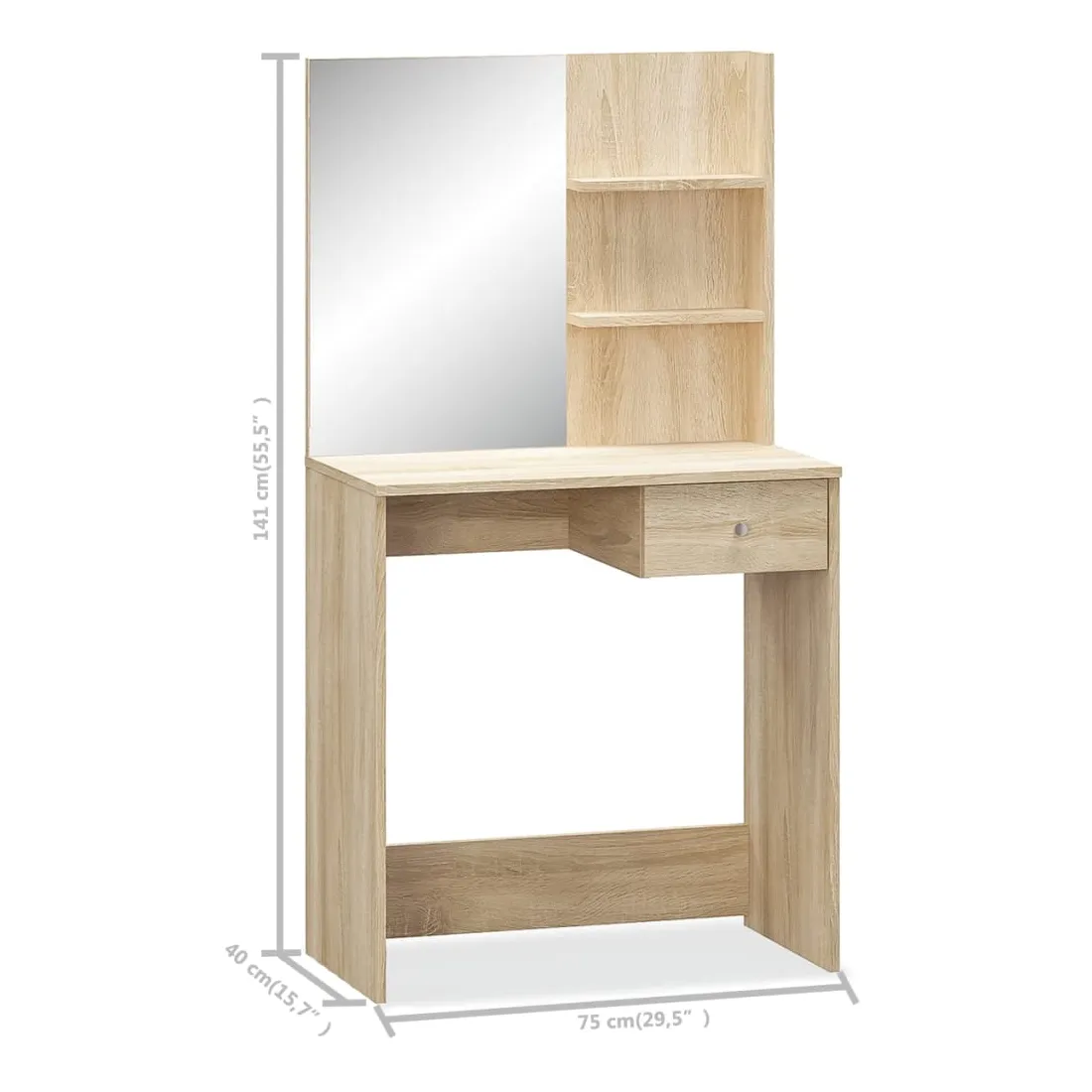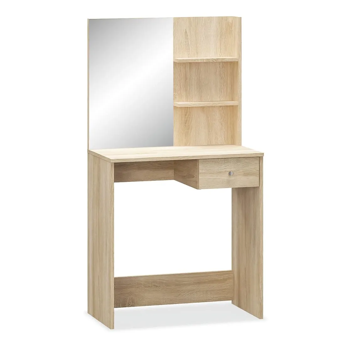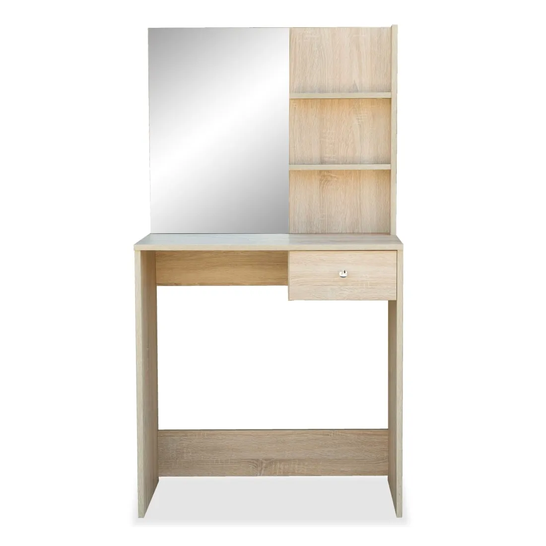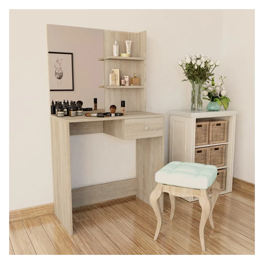 Cette coiffeuse avec un design moderne et élégant sera un excellent supplément au décor de votre chambre à coucher. La coiffeuse est en bois d’ingénierie avec des bords en PVC et est stable et durable. Grâce à son tiroir spacieux et à son système à étagères, vous trouverez suffisamment d'espace de rangement pour tous vos produits de beauté et tout ce que vous aimeriez garder à portée de main afin de réduire l'encombrement dans votre chambre à coucher. L'assemblage est facile, tout ce qu'il vous faut est inclus dans le kit.