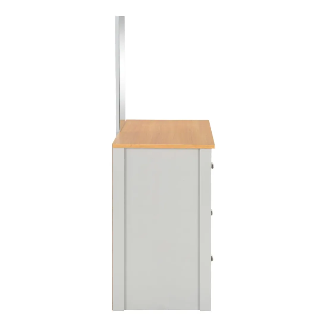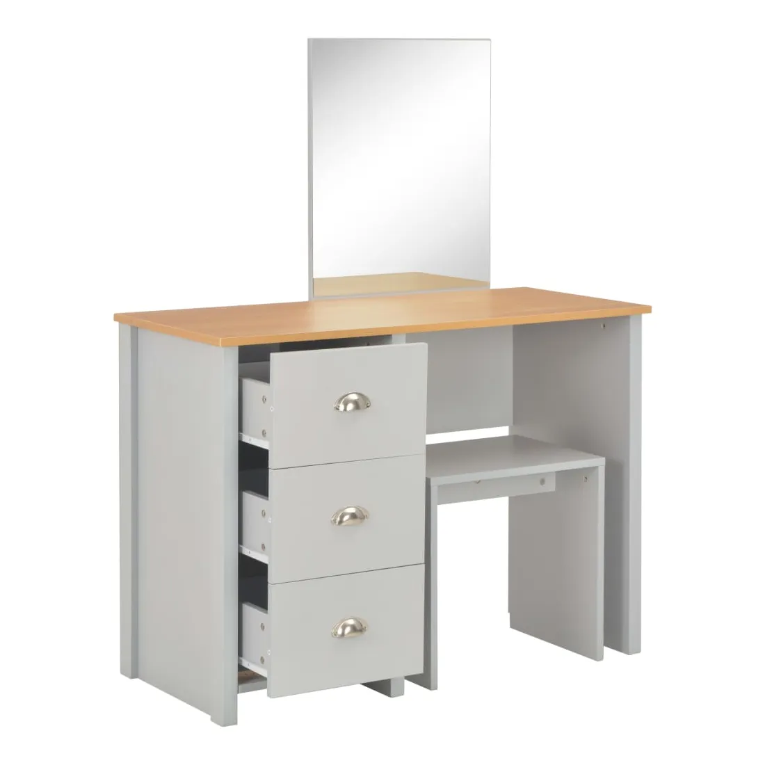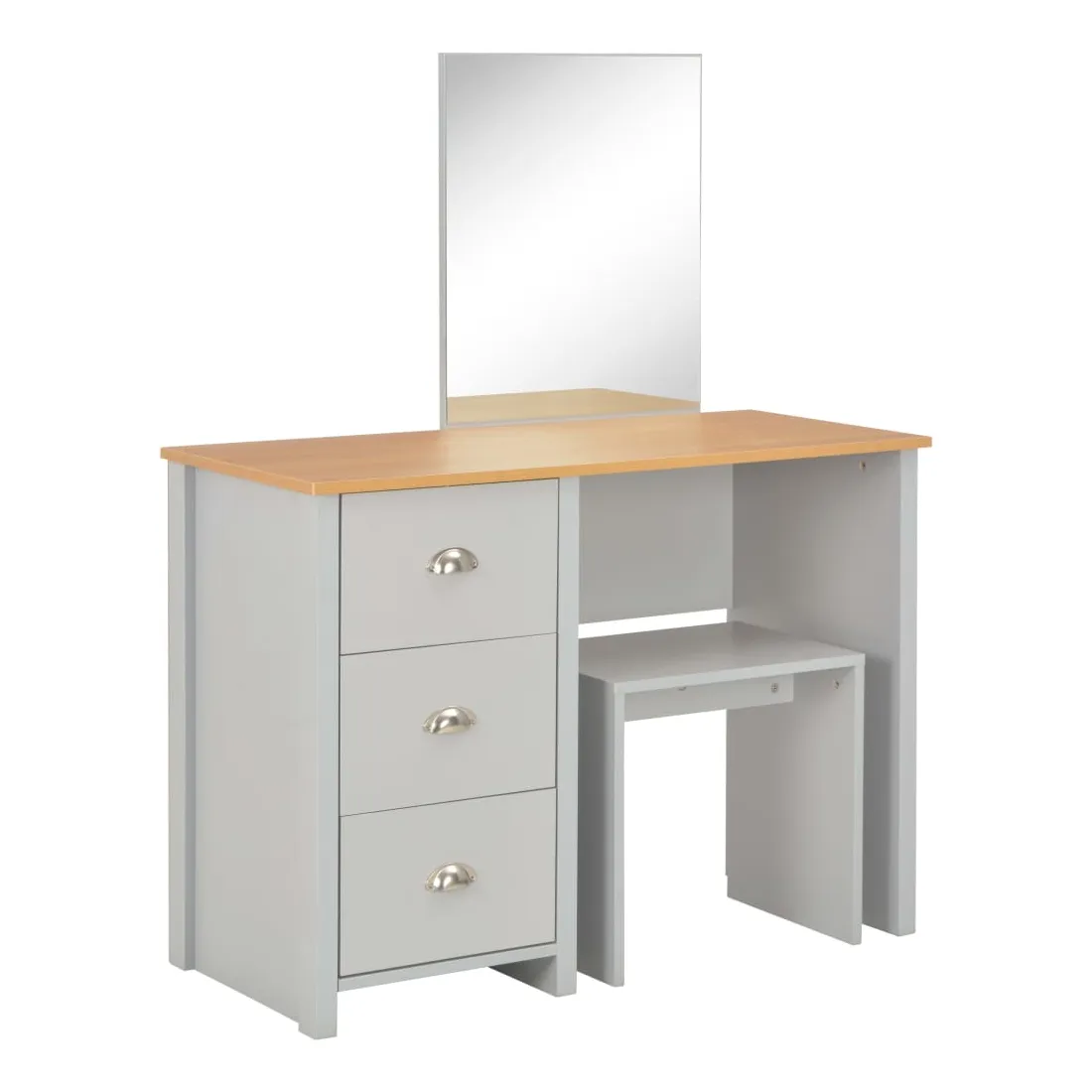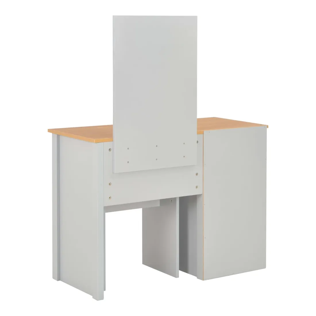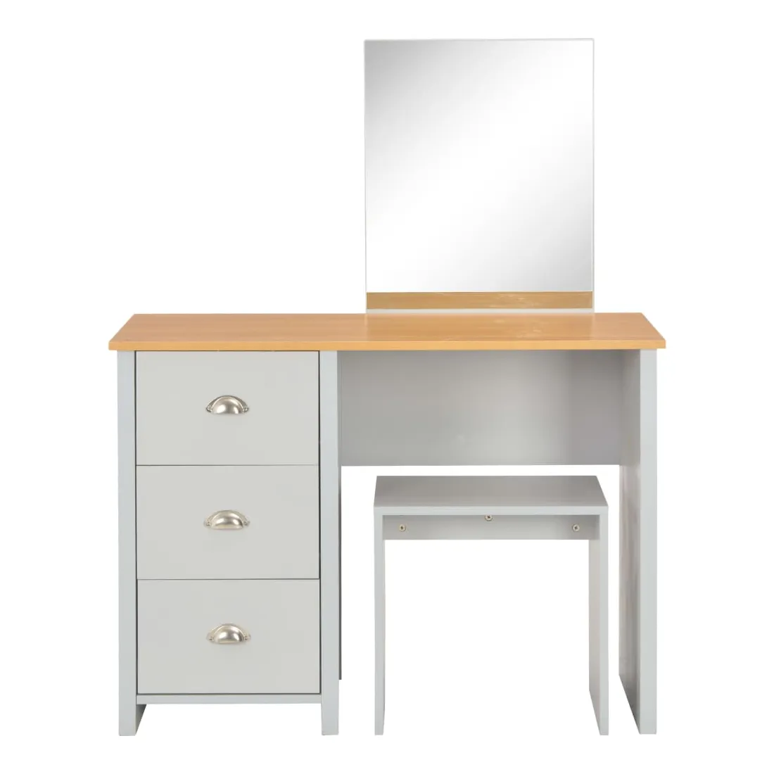 Cette coiffeuse avec un design moderne et élégant sera un excellent supplément au décor de votre chambre à coucher. La coiffeuse est en bois d’ingénierie avec mélaminé et est stable et durable. Grâce à ses tiroirs spacieux, vous trouverez suffisamment d'espace de rangement pour tous vos produits de beauté et tout ce que vous aimeriez garder à portée de main afin de réduire l'encombrement dans votre chambre à coucher. La coiffeuse est livrée avec le tabouret robuste et classique, vous permettant de vous asseoir confortablement pendant le maquillage.