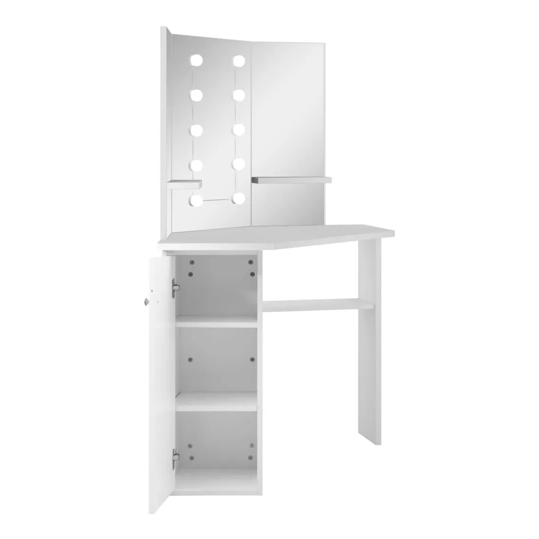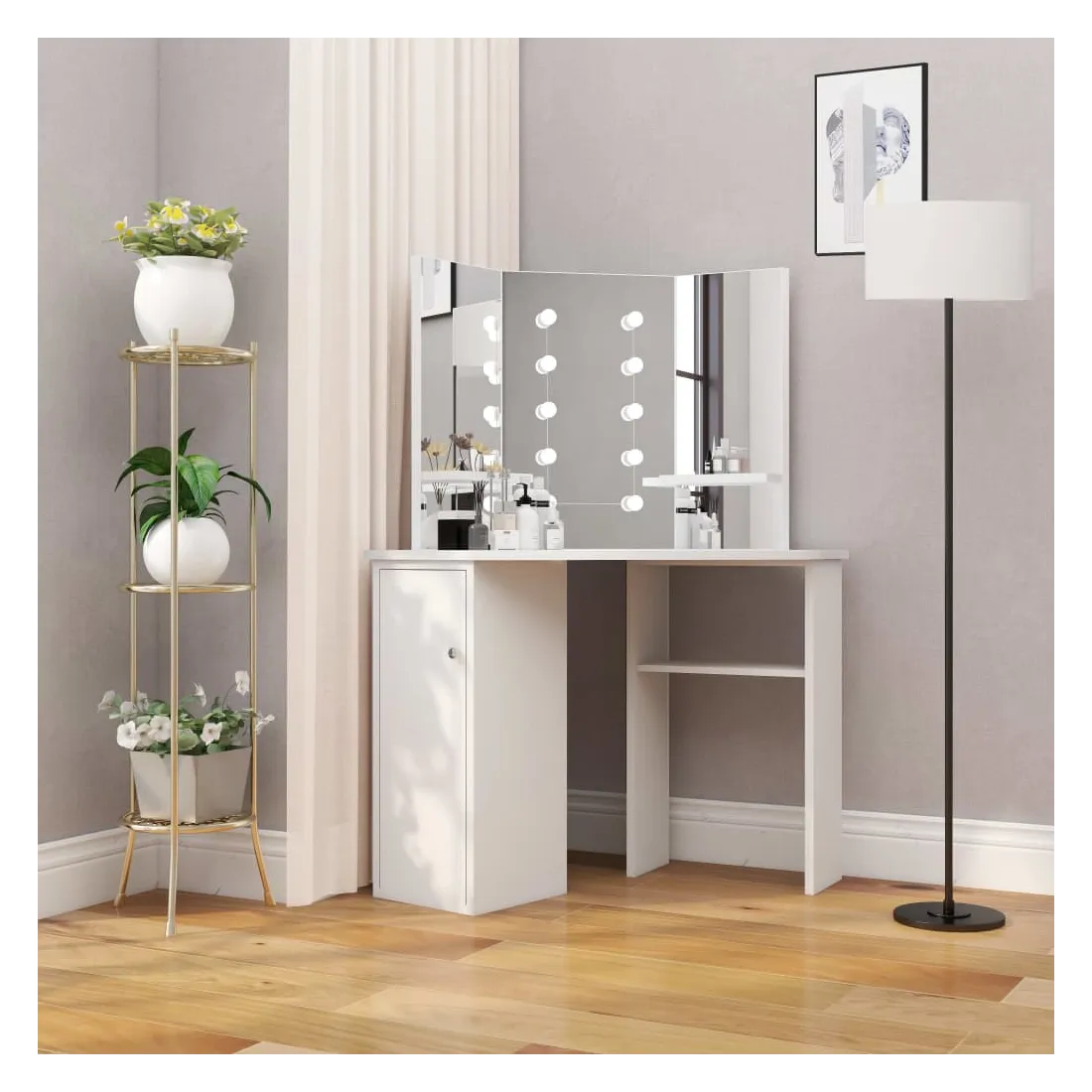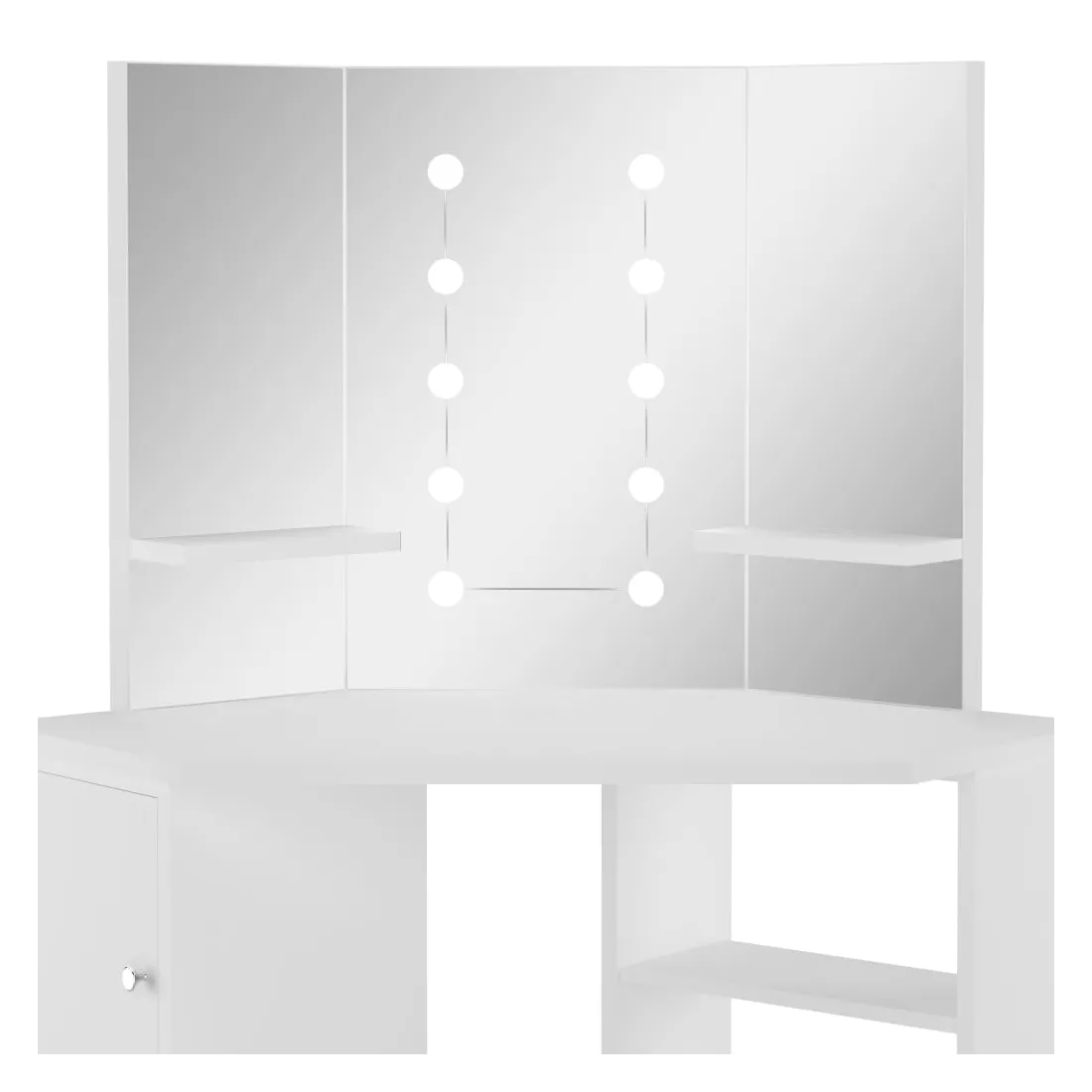Coiffeuse d'angle table de maquillage lumière LED Blanc clair
