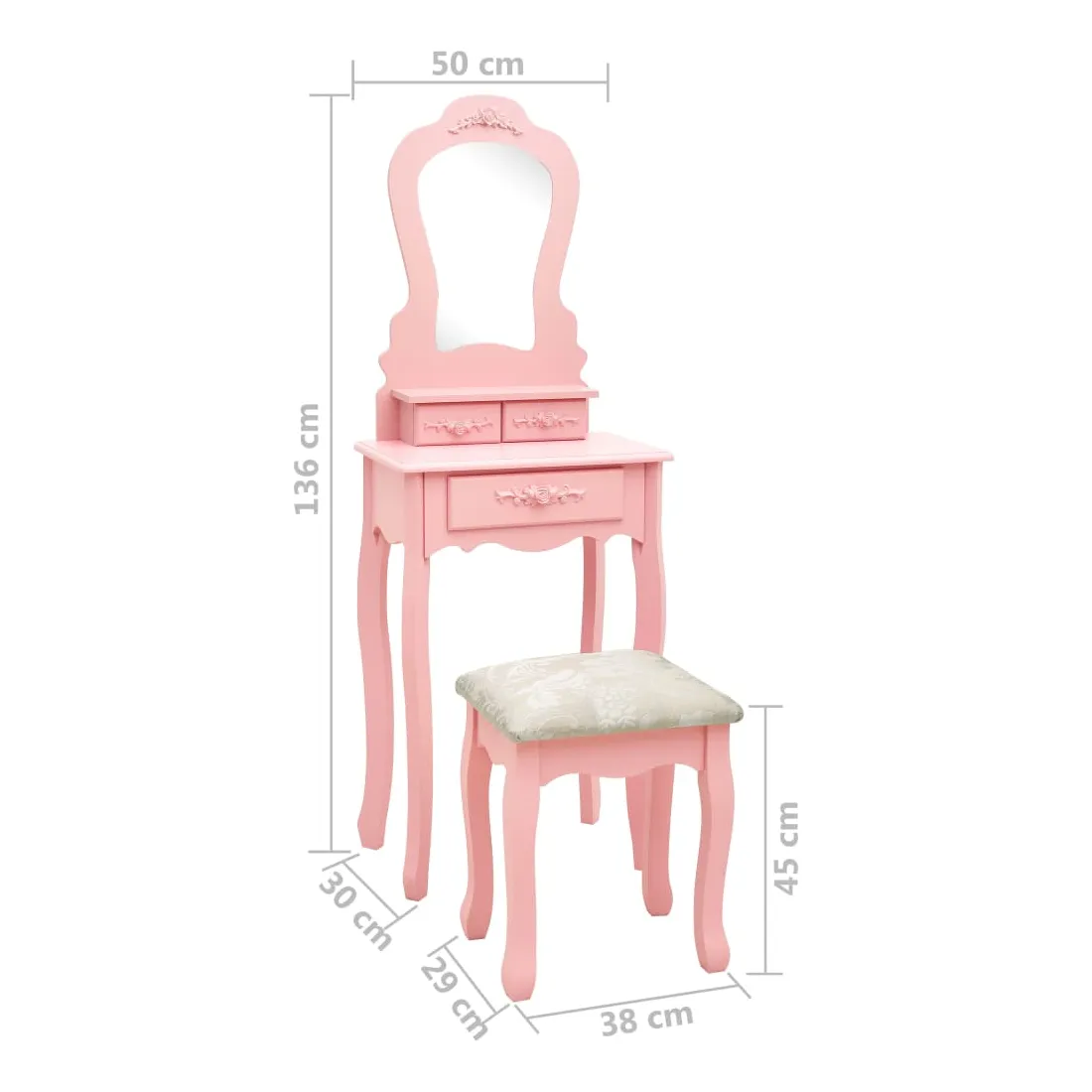 Ensemble de coiffeuse avec tabouret Rose 50x59x136 cm Paulownia